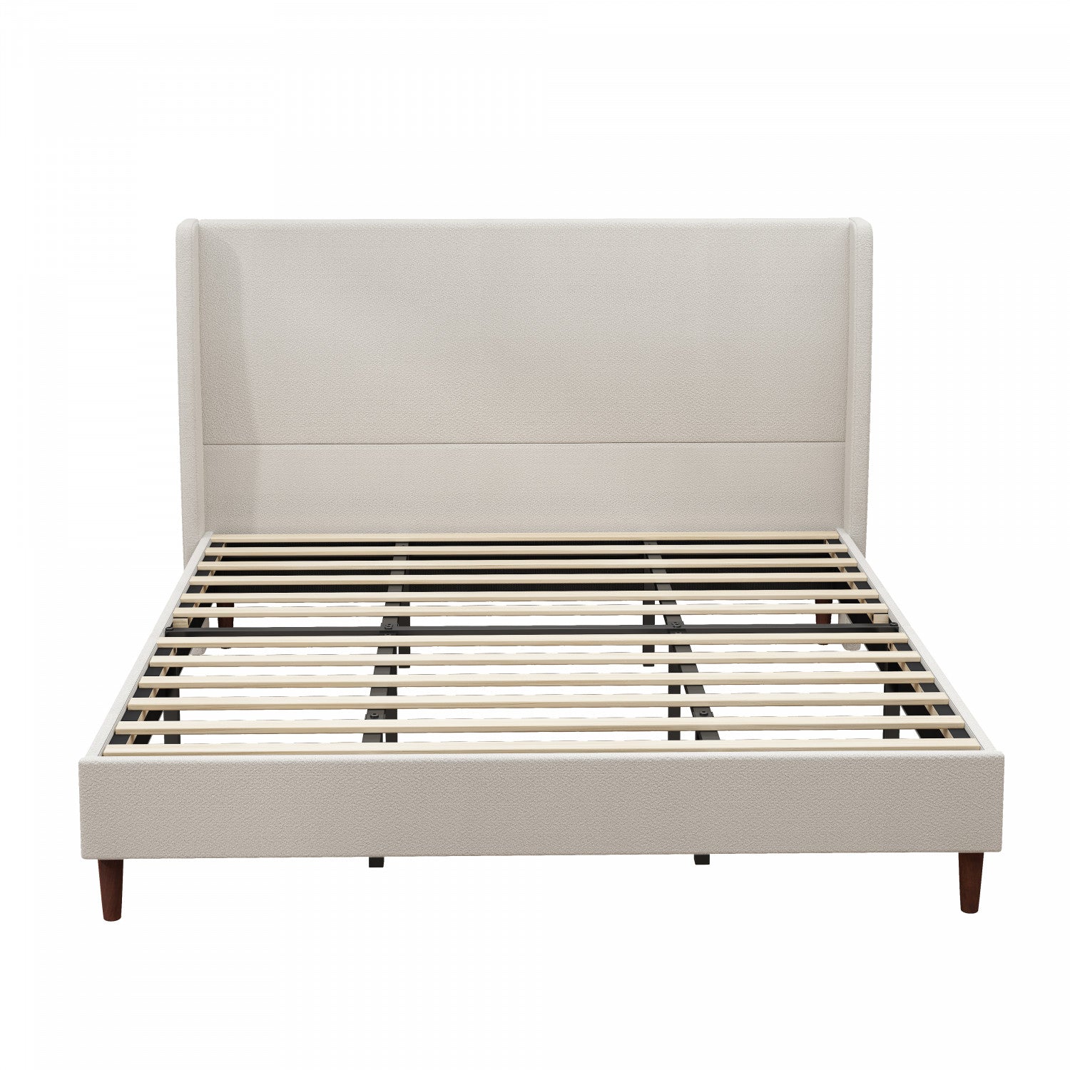 Transform your bedroom into a relaxing retreat with the Upholstered King Bed Frame. Featuring a tall, cushioned headboard wrapped in soft beige chenille fabric, this bed adds both luxury and comfort to your space. Built with solid wood, MDF, and plywood, it ensures strength and long-lasting durability. The 12 sturdy wooden slats provide stable mattress support and remove the need for a box spring. With its refined look and easy assembly, the Harper bed brings elegant comfort and timeless charm to any modern home.
