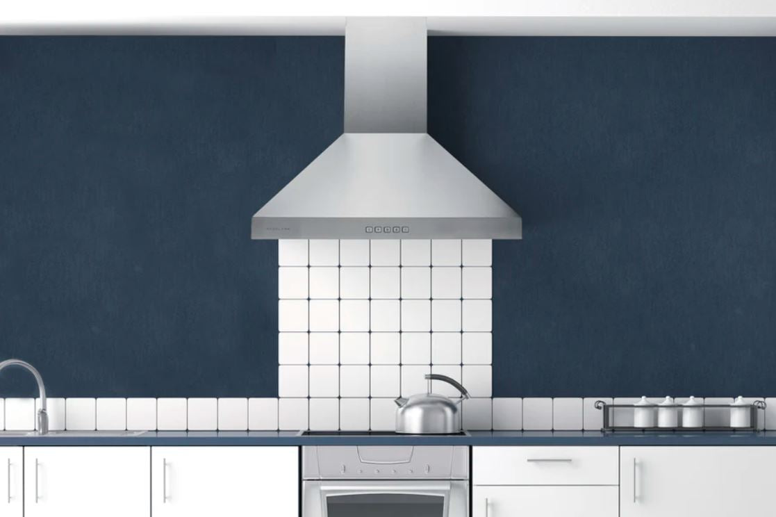 This Hauslane Chef Series Wall Mount Kitchen Range Hood in the Pro model features a matte white design and offers strong suction for a clean kitchen. It also comes with changeable LED lighting and can be converted to ductless. The baffle filters are dishwasher safe.