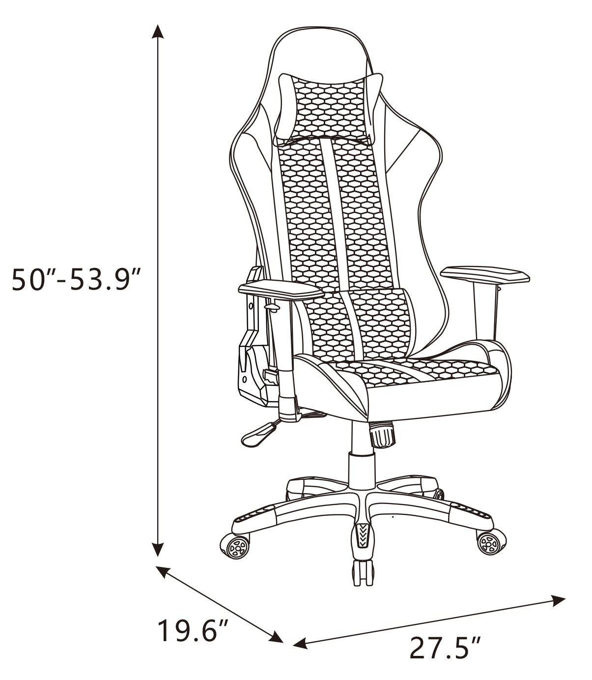 Width: 27.5" (69.9 cm) Height: 53.9" (136.9 cm) Depth: 19.6" (49.8 cm)