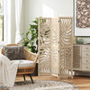 | Key Features | ●Detachable top and bottom form two independent dividers ●Three panel design creates personal space or divides rooms ●Tropic palm leaf patterns enhance elegance ●Solid paulownia wood frame ensures strong support ●Folding design with eight metal hinges simplifies storage ●Lightweight design for easy movement ●Assembly required |