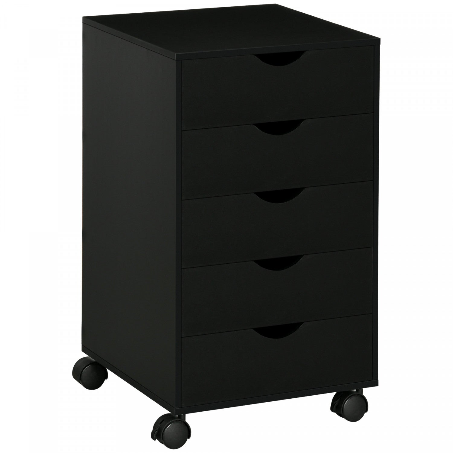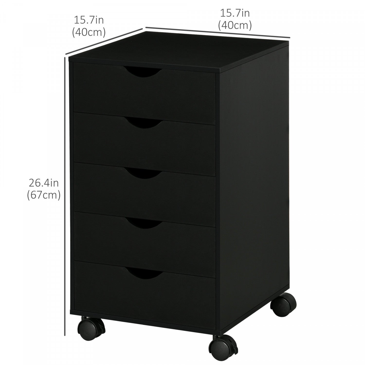 | Key Features | ●Large storage capacity with 5 drawers ●Allows you to store files or small office accessories ●Ball-bearing drawer slides for smooth gliding ●4 smooth-rolling casters with 2 locking brakes for easy movement ●Minimalist design with clean line, goes well with a contemporary or modern home and office decor ●Made of quality particle board for sturdiness ●Assembly required |