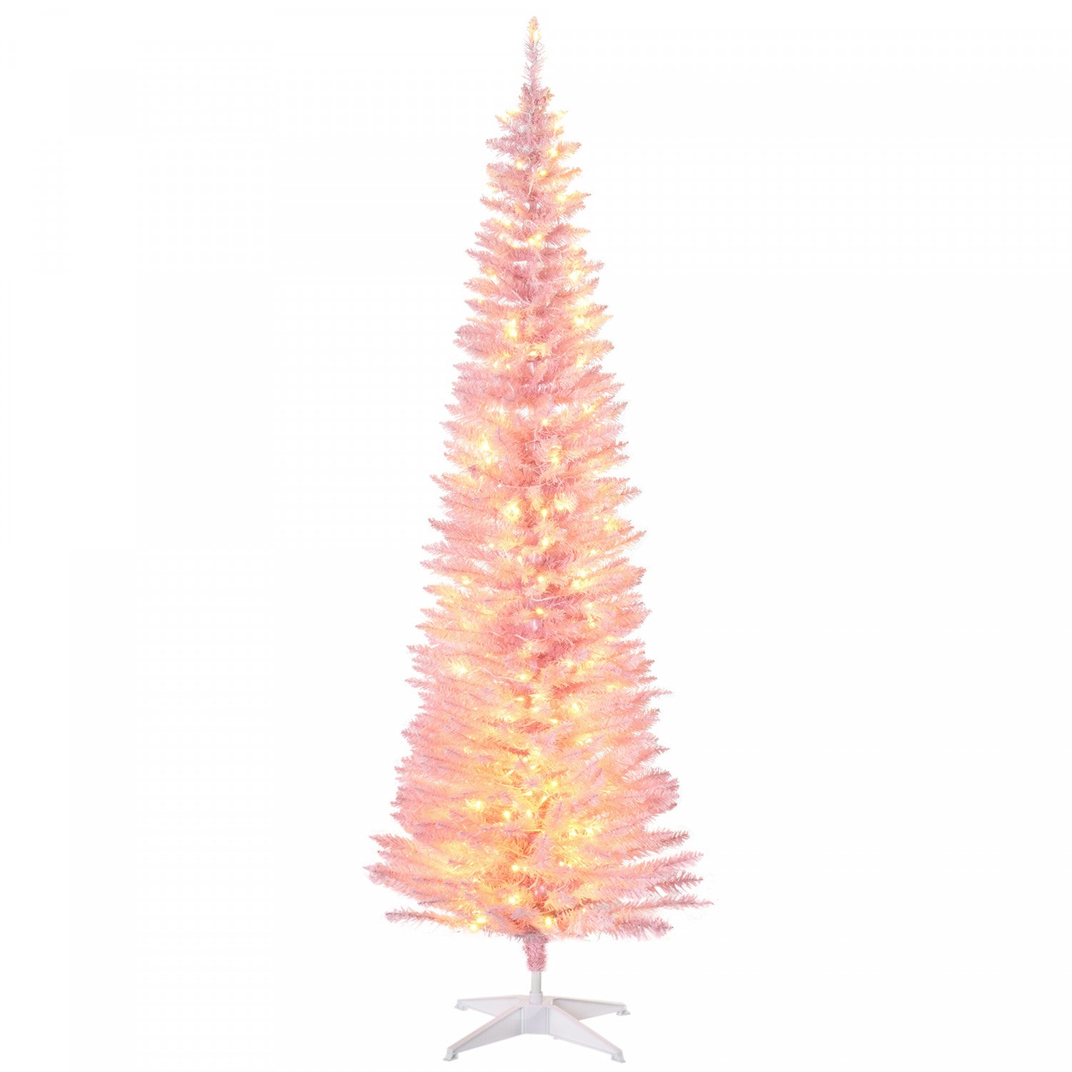 This holiday season, spend more time celebrating and less time maintaining and cleaning up with this 6' tall pre-lit artificial Christmas tree from HOMCOM. With this slim, pencil style model, you get 200 built in warm white LED lights in a beautiful sparkling display to give off an authentic holiday feel. Celebrate this Christmas with HOMCOM!