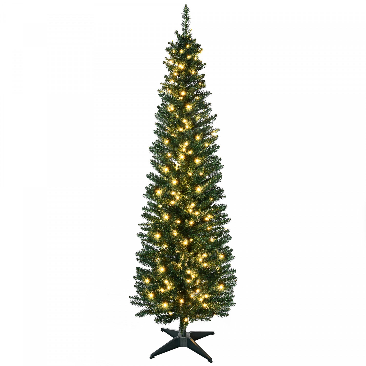 | Key Features | ●7 foot tall artificial Christmas tree in a slim pencil style design ●200 LED lights built right into the tree provide a warm display ●499 realistic tree branches create a full-body, life-like tree ●Section design of branches make disassembly and storage quick and easy ●Separates into three individual sections for compact storage ●Includes a dismantling plastic base for additional structural integrity ●The tree is flame-retardant ●Branches are shaped in approximately 30 minutes |