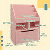 Key Features | ● Three-tier bookshelf, two storage compartments, and a large drawer for storing kids' clothes, books, or toys ● Wheels under the drawer for easy movement ● MDF for a sturdy structure with curves on the edges ● The anti-toppling hole on the back allows for additional anti-toppling device for more safety and stability ● Assembly required |