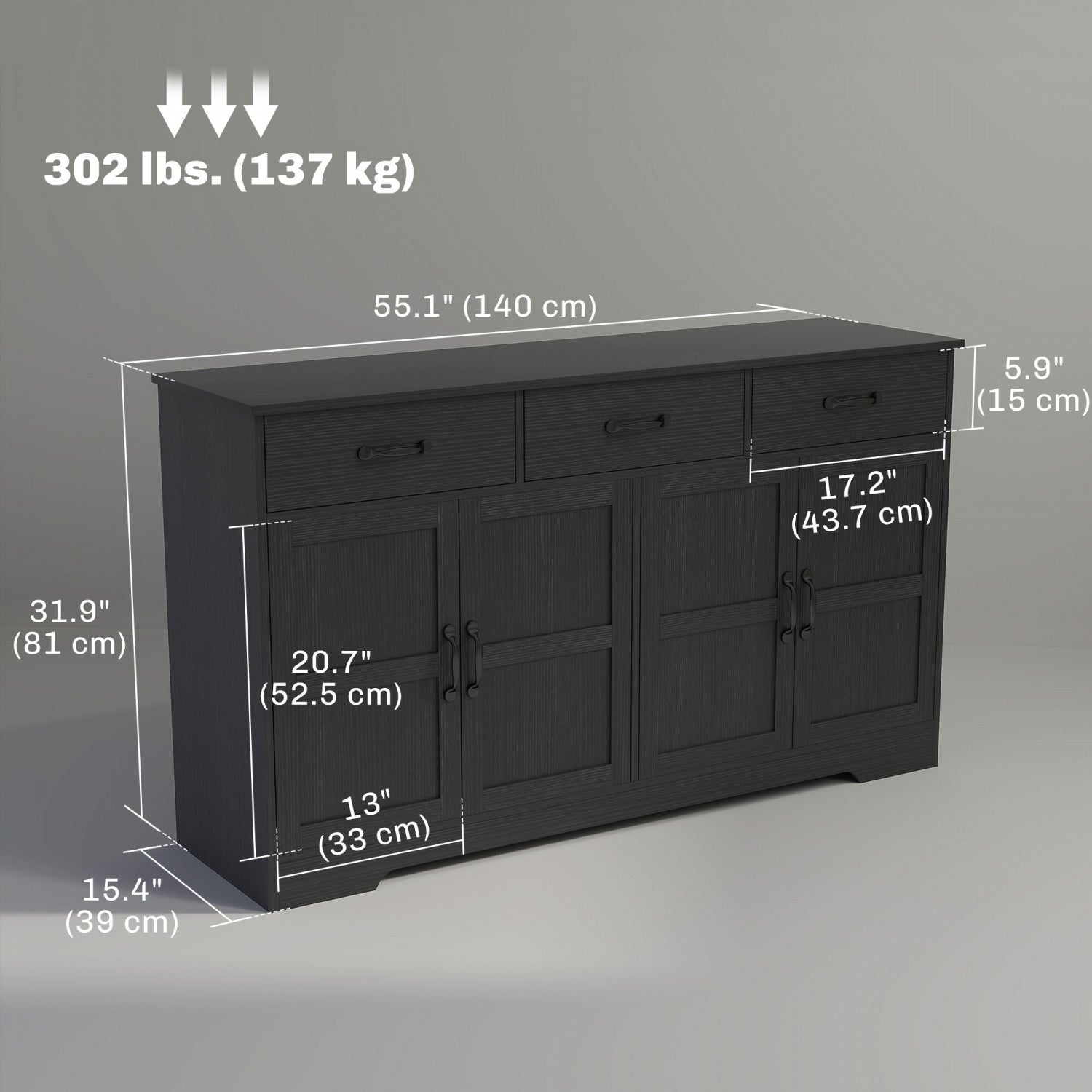HOMCOM Sideboard Cabinet, Coffee Bar Cabinet with Drawers, Distressed Black