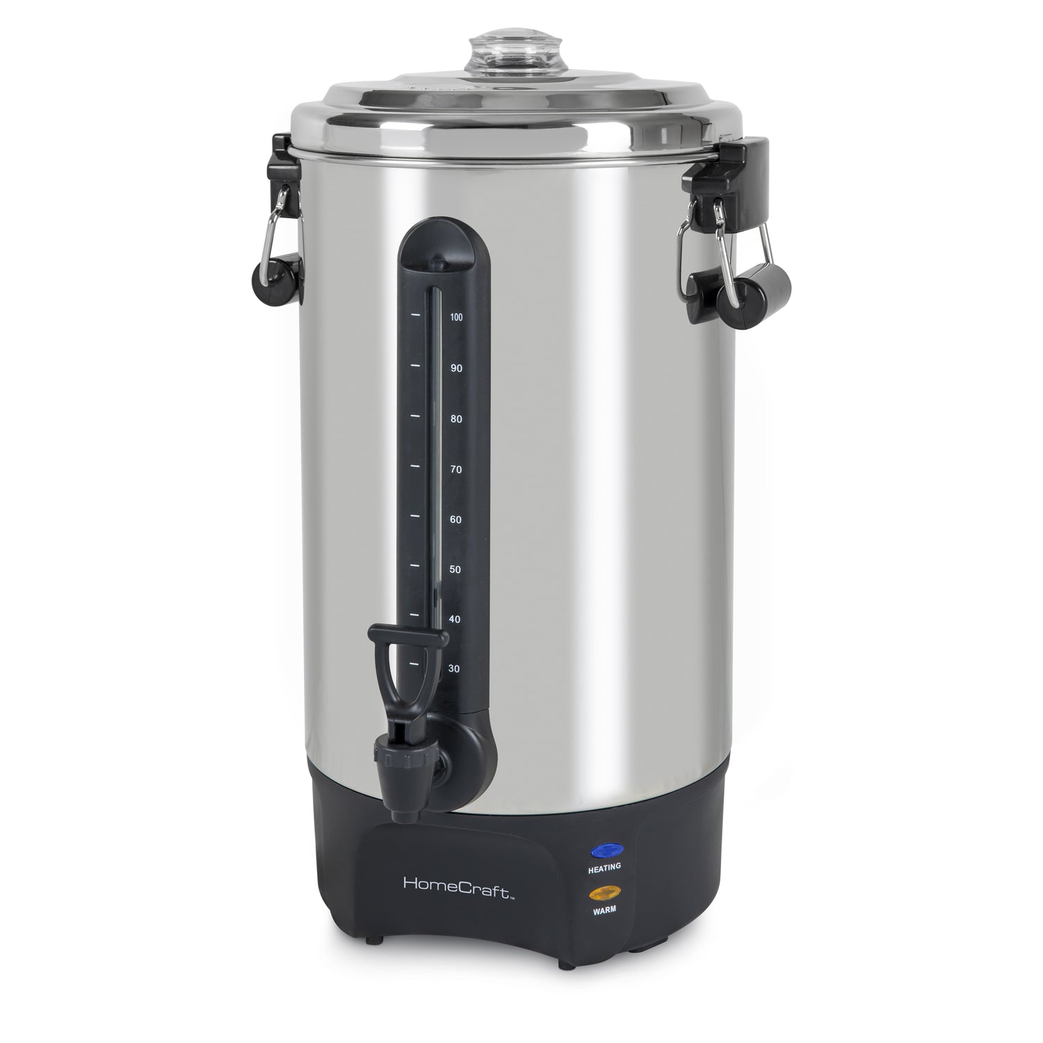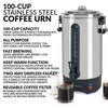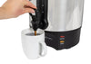 Perfect when hosting large gatherings or for use in meeting rooms, lounges and cafes, this polished stainless steel coffee urn efficiently brews up to 100 cups at a time of coffee, tea, cider, hot chocolate and more. The 2-way dripless faucet keeps surfaces clean while allowing for easy filling of cups. When done brewing, the keep warm function will keep the brew hot for hours and ready for guests.