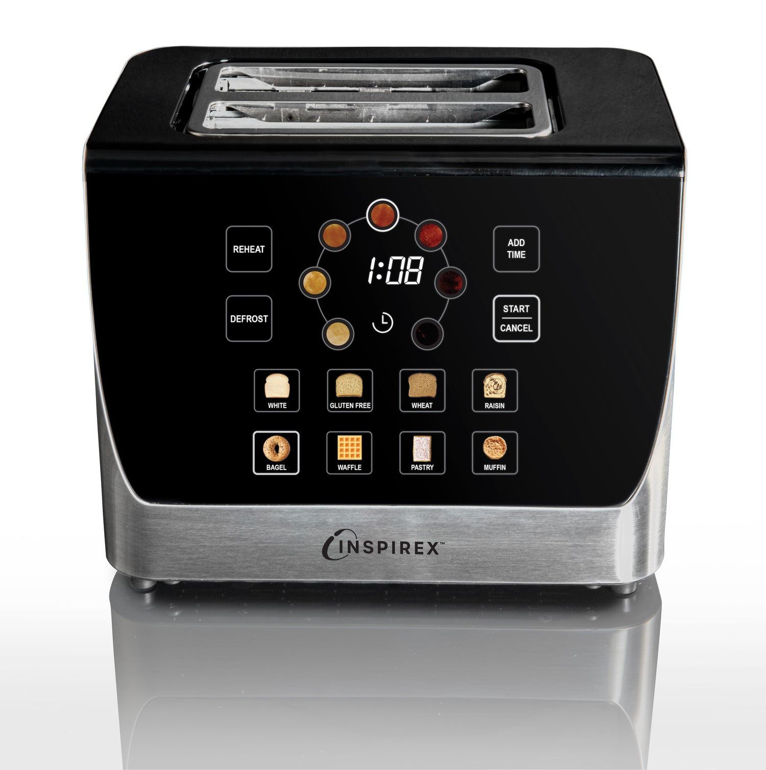 With the Inspirex Touchscreen Toaster, perfection is at your fingertips. Toast your favorite type of bread, bagel, English muffin, or pastry, perfectly crispy on the outside while keeping the inside moist and delicious. On the quick response touchscreen display, you can choose from 8 bread types and 7 browning levels, each with its own toasting algorithm to reach the precise toasting level you desire. The pre-programmed times are tested and ensured to reach the exact browning level selected. Add time, defrost, and reheat settings are also available for you to make further adjustments to your toast. The sleek, modern design makes it a staple for any kitchen and will inspire you to make excellent recipes!