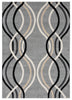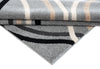 Curvy lines undulate across this retro rug in a soundwave-like pattern. The black, grey, cream and taupe stripes rest against a smoky grey background for a sophisticated, modern look. Machine woven for durability, the densely packed polypropylene threads are stain resistant and colourfast. Serged edging features tightly wrapped thread along the sides that helps prevent fraying and keeps a tidy appearance, while the reverse side is strengthened with a woven jute and polypropylene backing so this rug keeps its elegant appeal day after day.