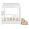 Transform your child’s room into a playful and cozy hideaway with this Full-Size Wooden House Bed. Designed with a charming pitched roof, it creates a fun semi-enclosed space that encourages imaginative play while offering a comforting sleep environment. Built from sturdy pinewood and durable engineered wood, the bed provides reliable stability for long-term use. Three thoughtful storage solutions include two spacious under-bed drawers for clothes, toys, or bedding, plus a convenient rear shelf for books, clocks, and decor. The open house-frame design promotes safe airflow, ensuring comfort throughout the night. Clear instructions and tools are included for easy assembly, making this delightful bed an instant centerpiece in any kid’s bedroom.
