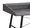This Jeremy desk will take your office to the next level. The sides of the desktop gradually rise to meet the small hutch for a sleek look. The top of the hutch doubles as a shelf, while space underneath is divided into two storage cubbies where you can tuck away small items and keep your work surface organized. Providing support and stability is a metal base that features striking design details like tapered metal legs and slender X-shaped support bars. This laptop desk or writing table has a compact design and mid-century modern style that is a great choice if you use your living room or bedroom as an office.