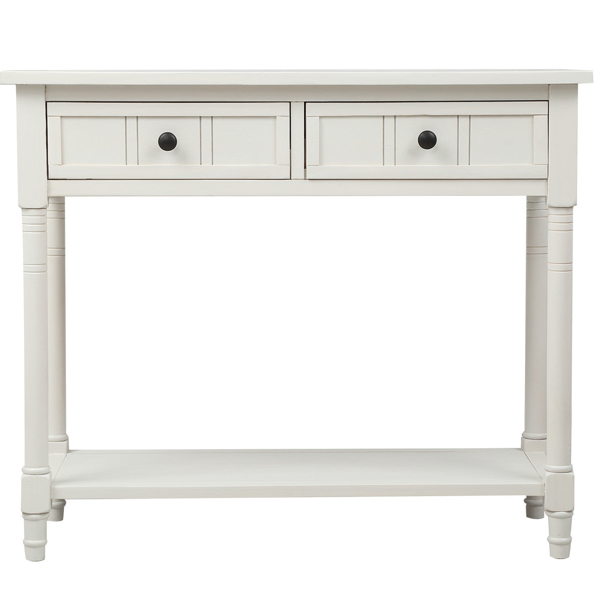 Jeremy Solid Wood Traditional Console Table With Drawers And Shelf - Ivory White
