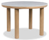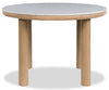 Accent Details | The natural oak colour complements the white marble tabletop. |