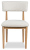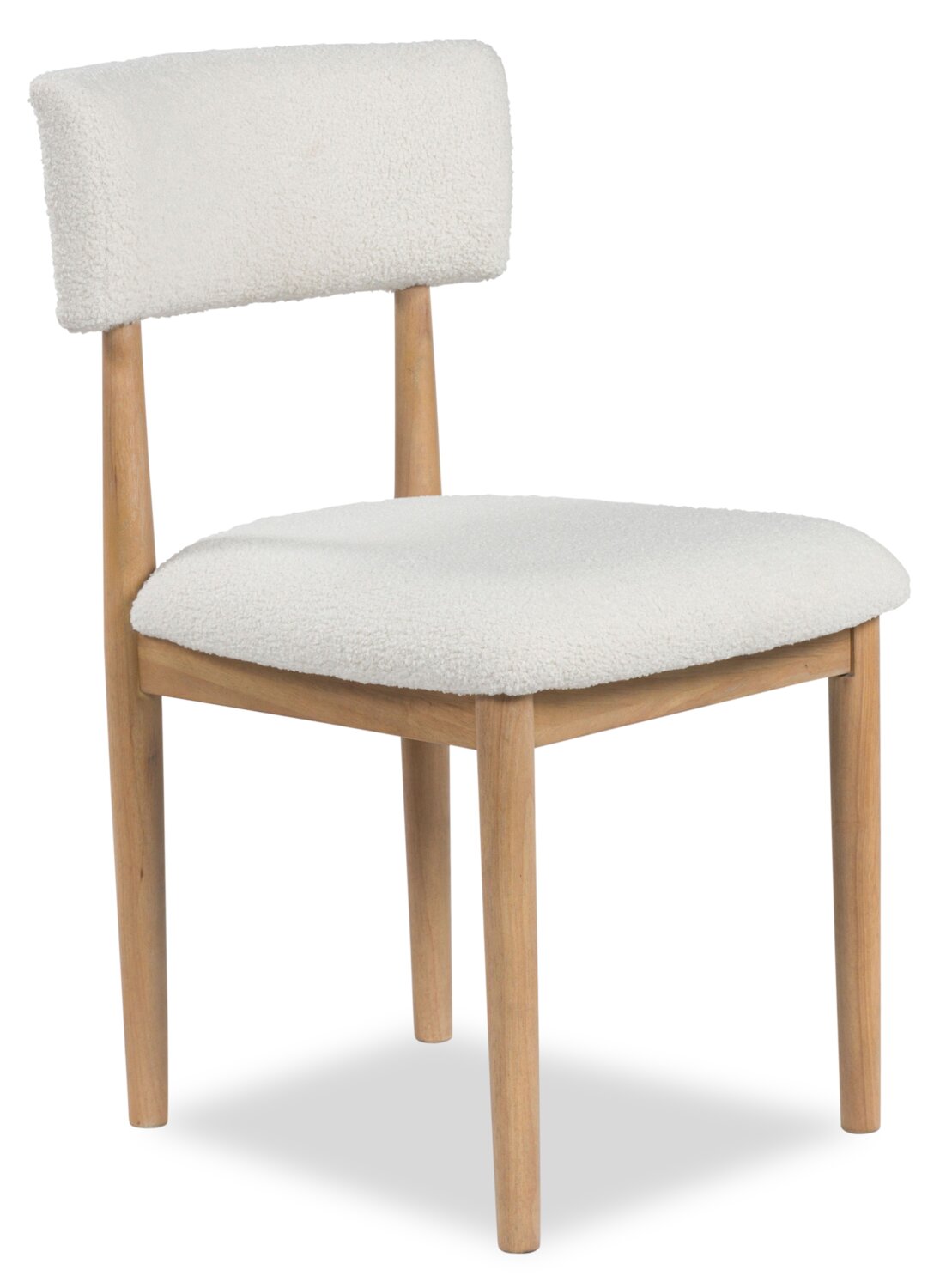Accent Details | The natural oak colour complements the white upholstered seat and back cushions. |