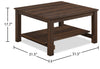 Jordi 31.5" Traditional Coffee Table with Shelf - Brown Walnut Finish Wood