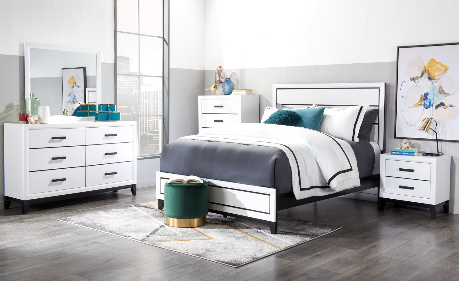 Hardware | Black drawer pulls add modern style. |