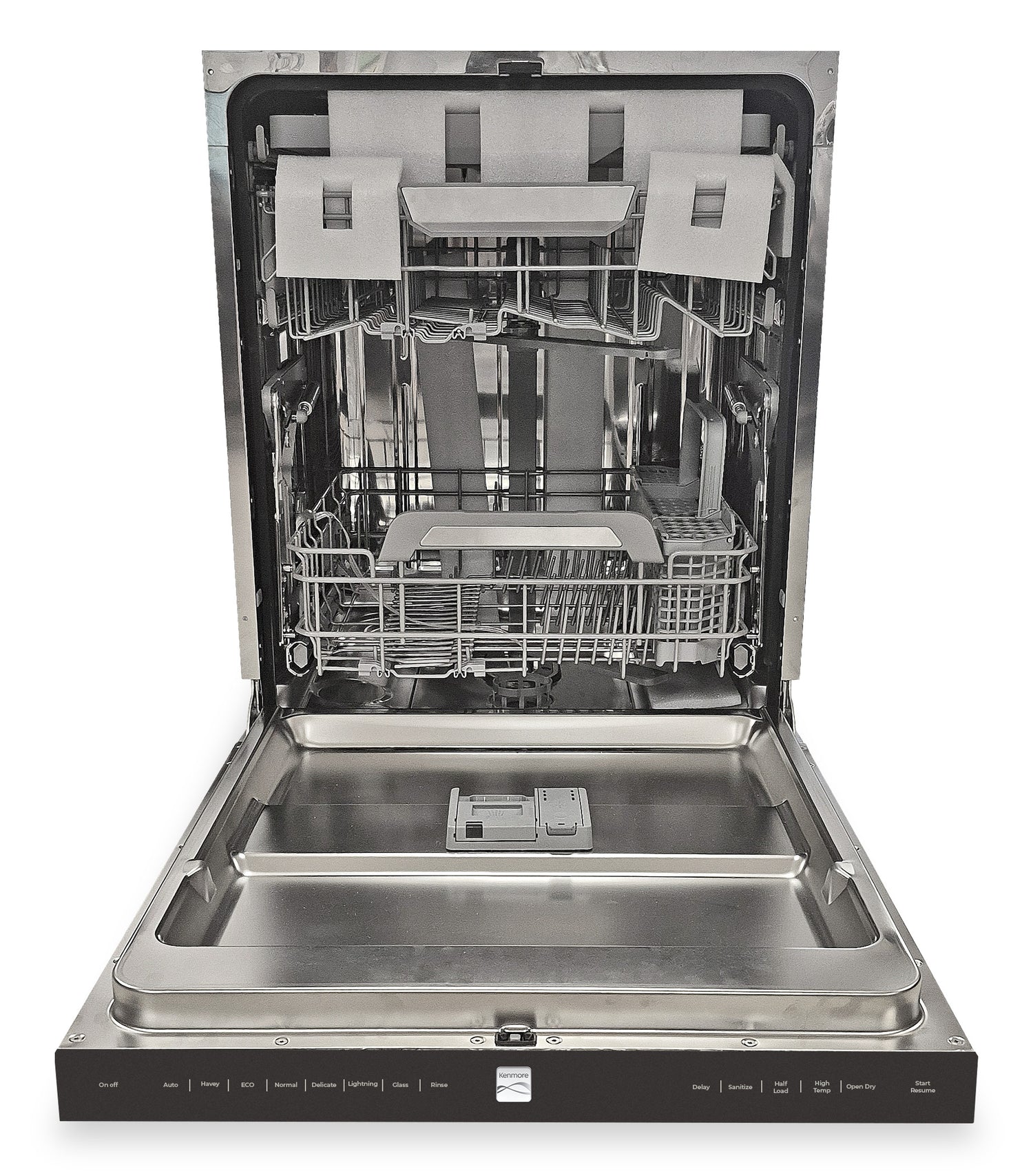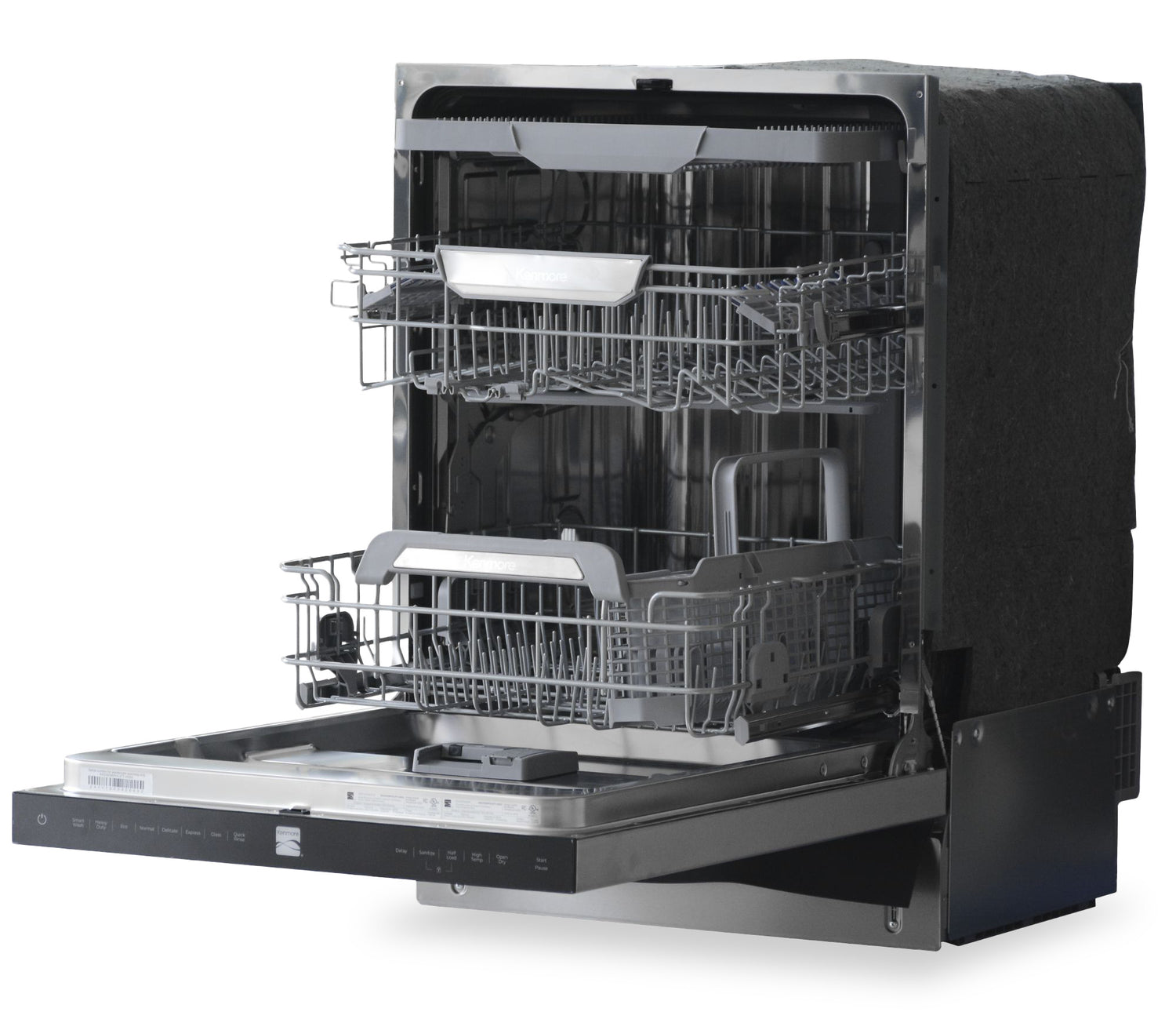 Make dish duty effortless with this Kenmore built-in dishwasher. Its ultra-quiet 45 dBA operation keeps your kitchen peaceful while powerful Smart Wash and Heavy-Duty cycles tackle even the toughest messes with precision. A convenient third rack and the EASYREACH lift system provide room for utensils, glasses and larger items, while Sanitize and High Temp options ensure a hygienic, spotless clean. Sleek, reliable and designed for modern kitchens, this dishwasher makes every load simple, thorough and completely stress-free.