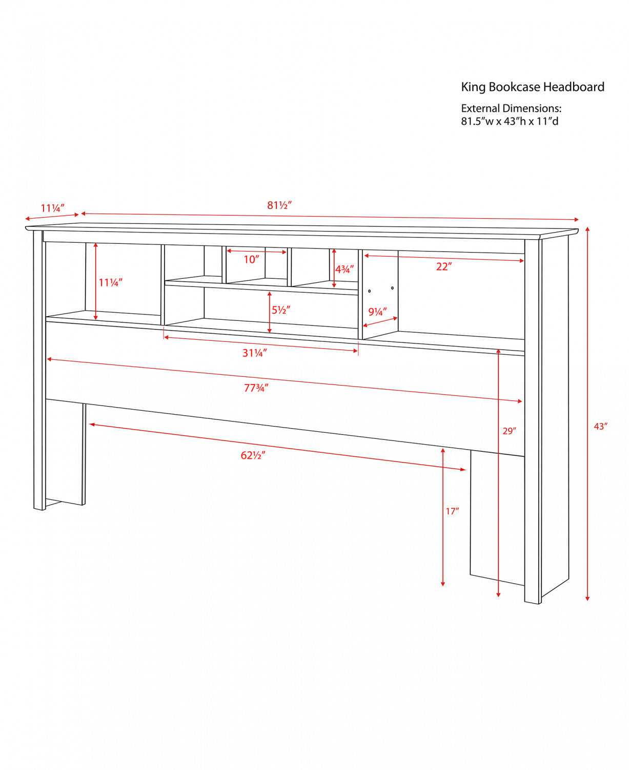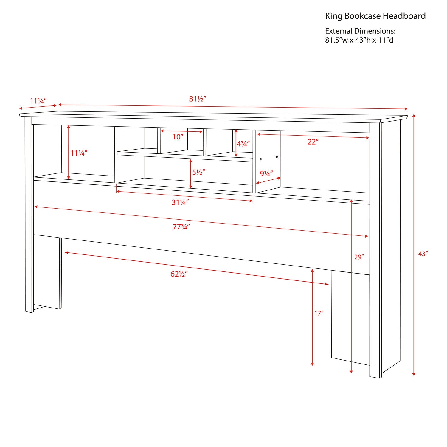 Width: 81.5" (207.0 cm) Height: 43" (109.2 cm) Depth: 11" (27.9 cm)