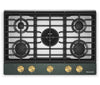 Five Versatile Burners: Edge-to-Edge Cast-Iron Grates: Premium Weighted Knobs: 6,000 BTU Simmer Burner: 17,000 BTU Power Burner: Wall-Oven Compatible Design: Electronic Ignition: Sealed Burner Construction: ADA Compliant: LP Conversion Included: |