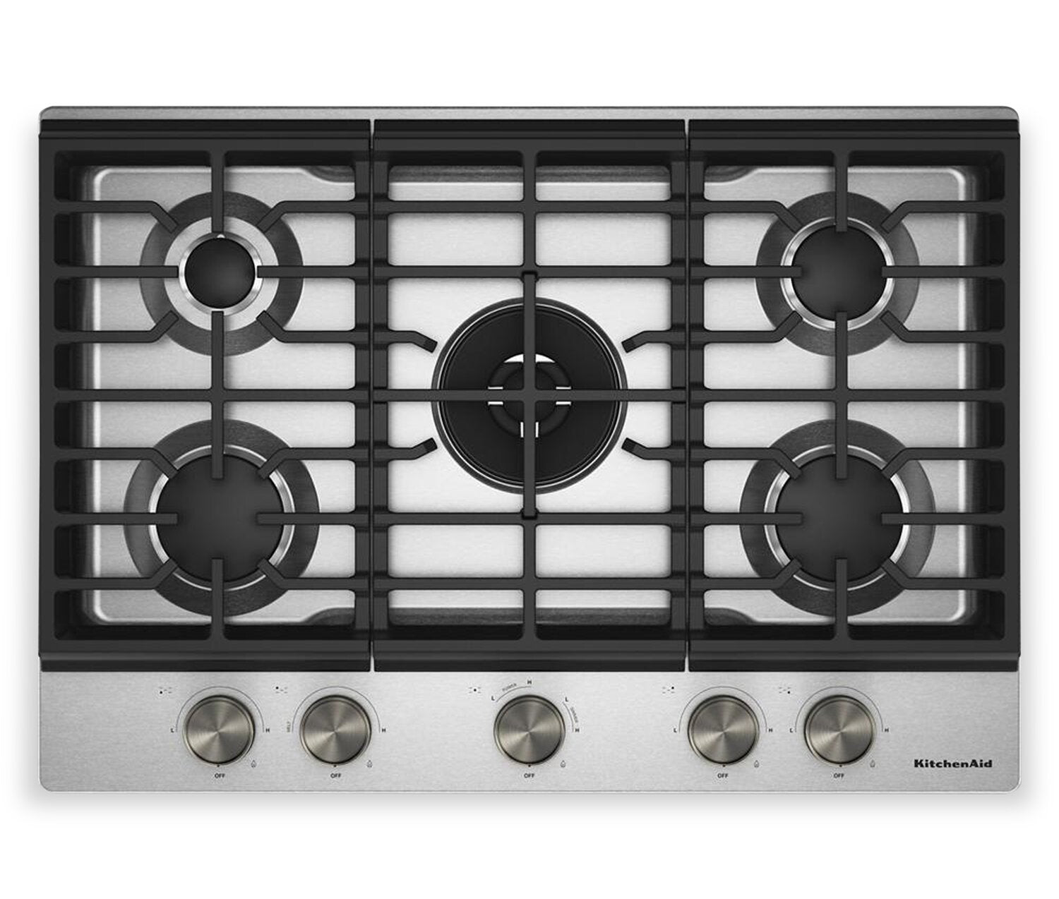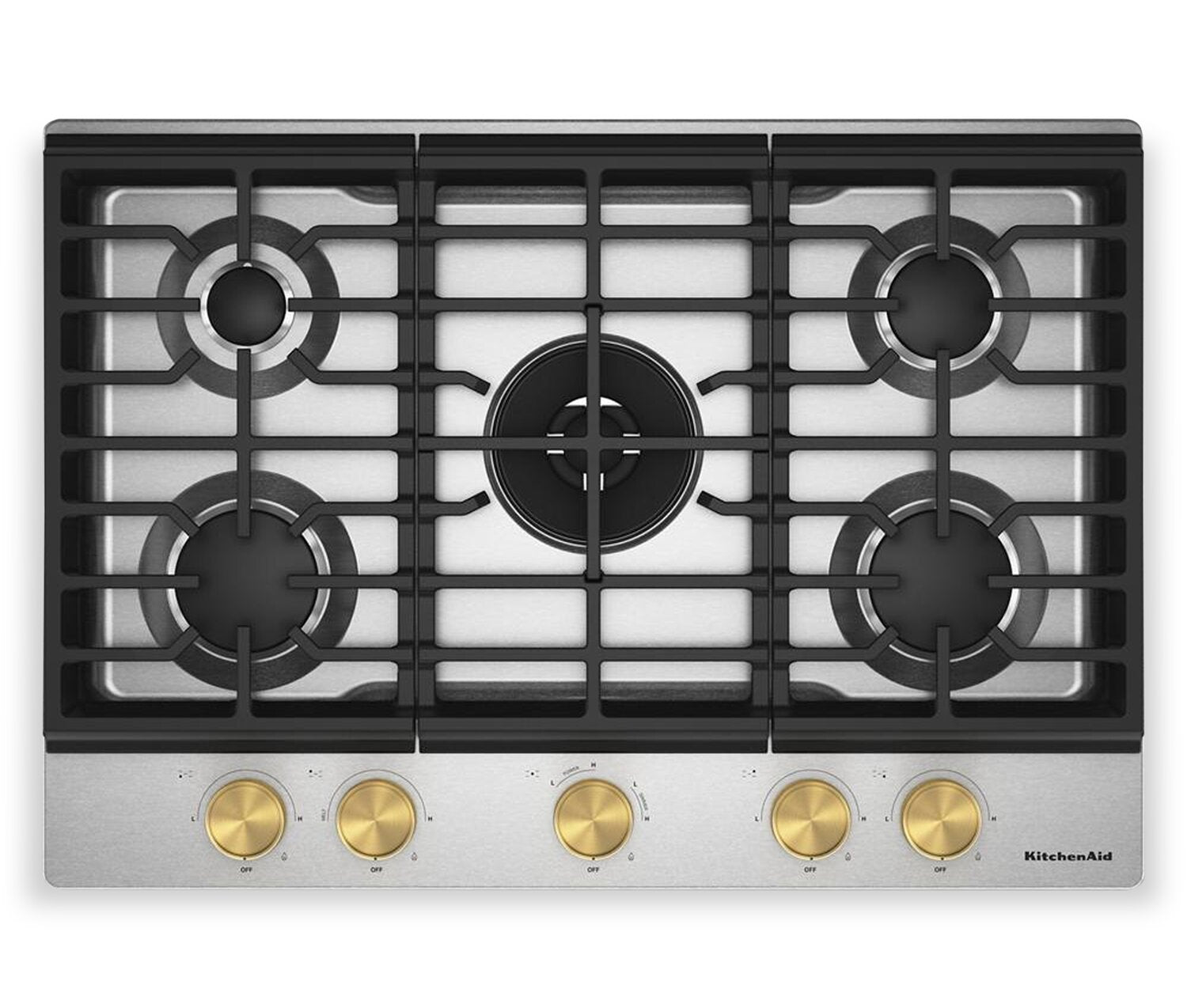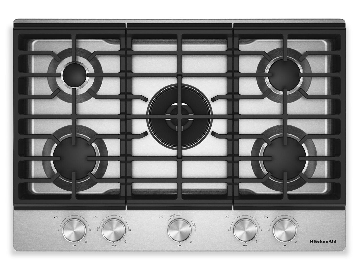 KitchenAid 30" Gas-on-Metal Cooktop with Integrated Wok Grates – Stainless Steel - KCGK530SSS
