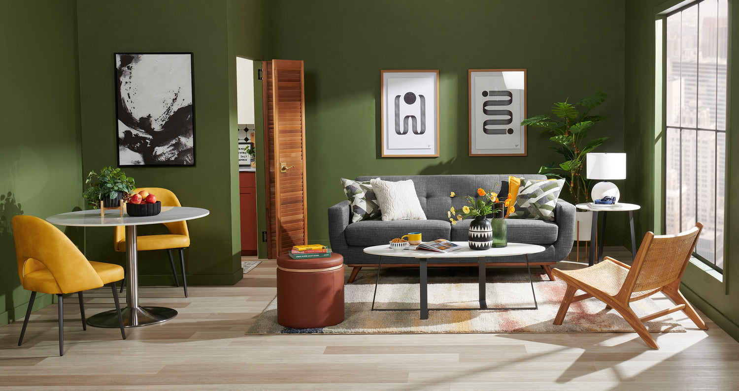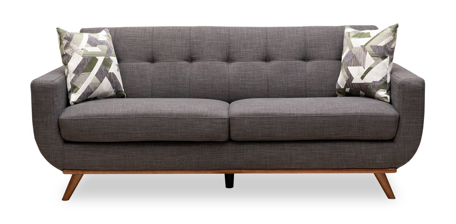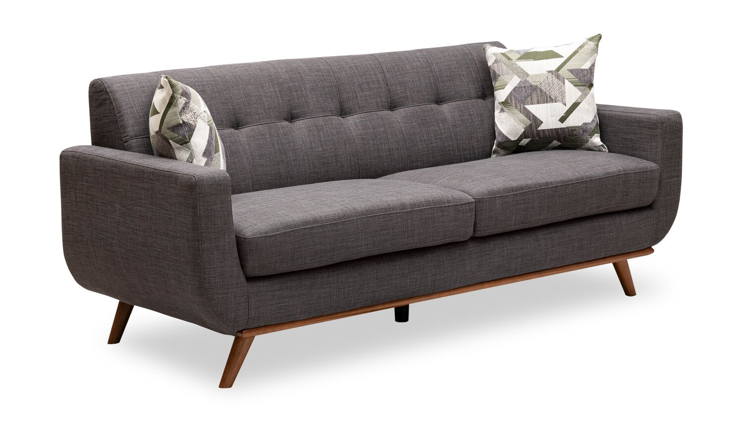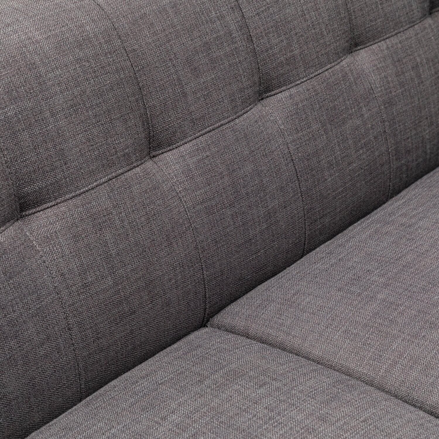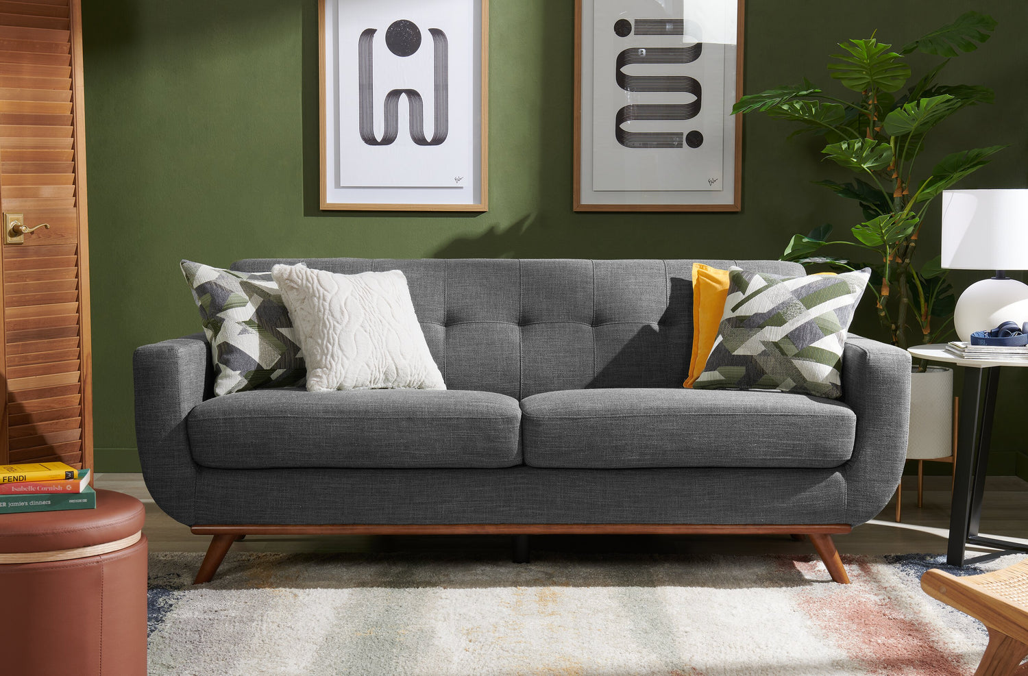 Accent Details | The tufted back cushion and rounded base of the seat are chic and present a unique appearance. Plus, the tapered wooden legs beautifully complement the upholstery. |
