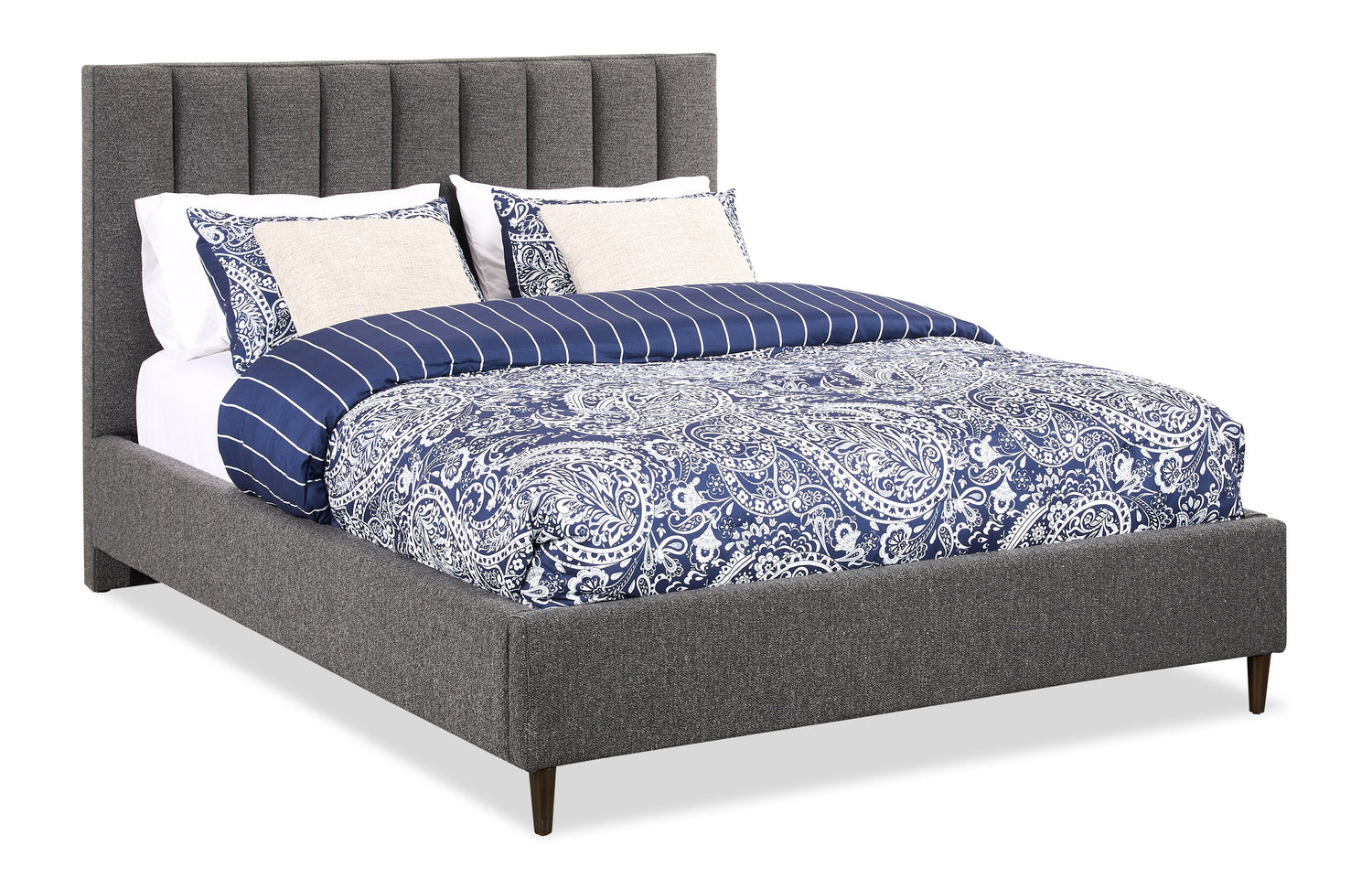 Kort & Co. Rain Upholstered Platform Bed in Charcoal Fabric, Tufted - Queen Size