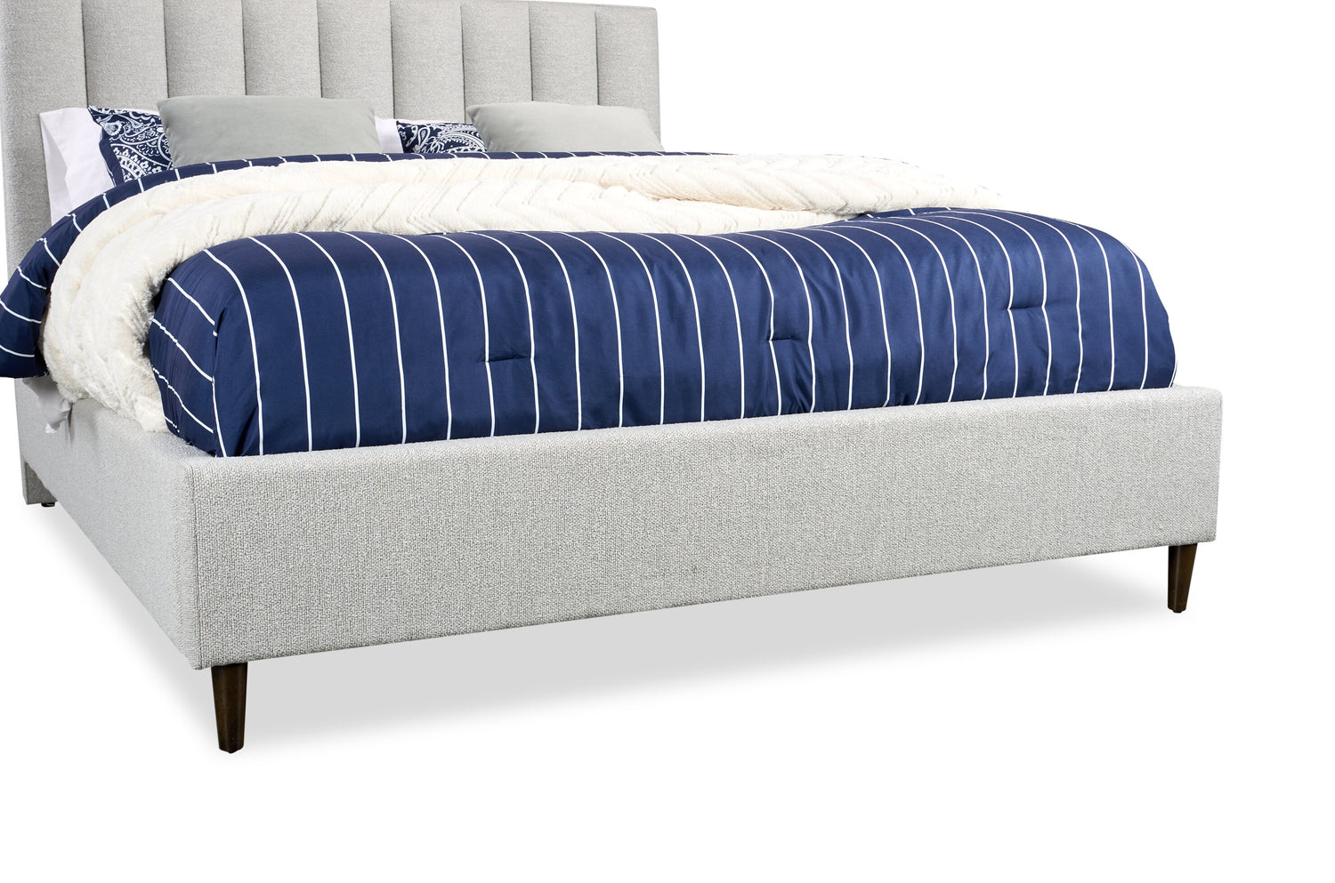Kort & Co. Rain Upholstered Platform Bed in Taupe Fabric, Tufted - Queen Size