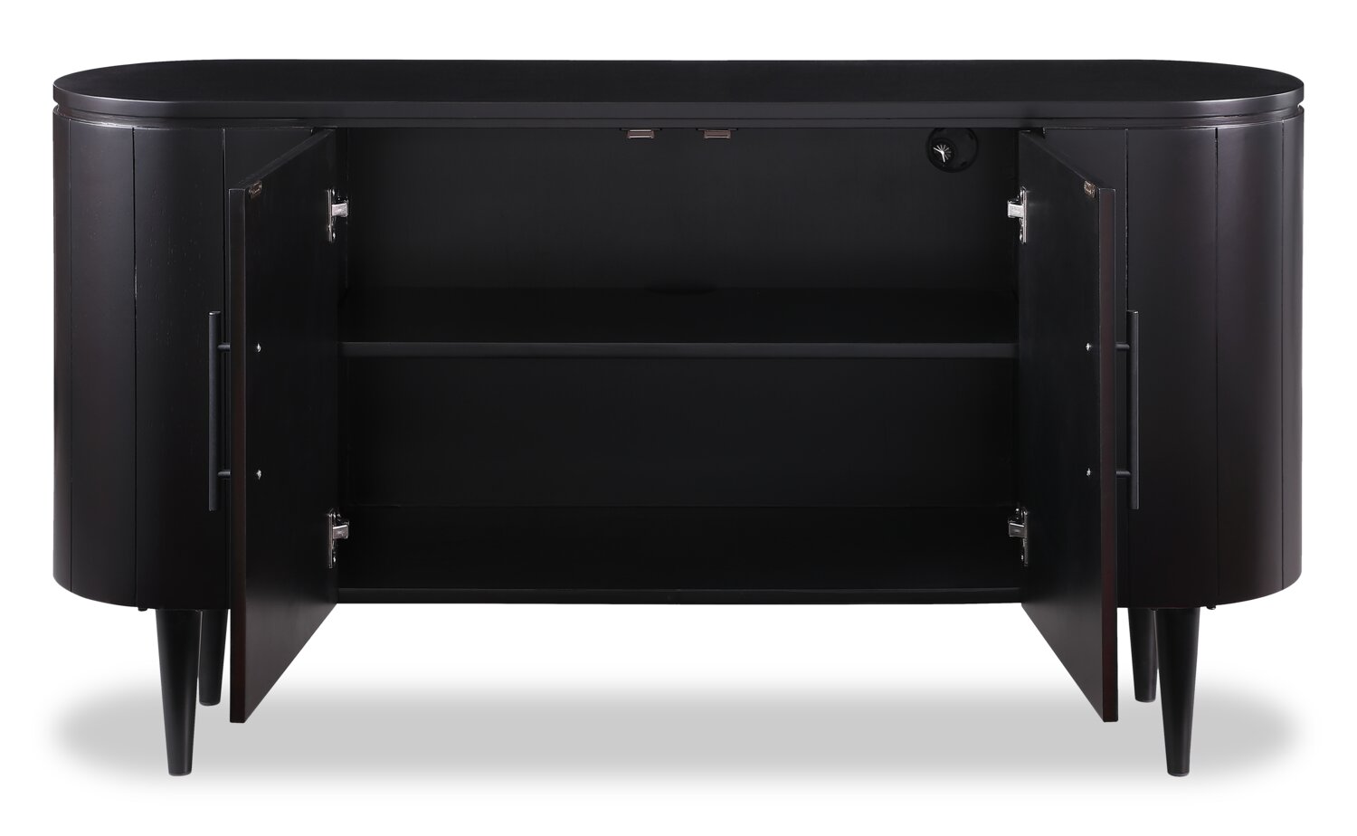 Bring quiet order to your space with the Vance cabinet. Its soft curved shape is the perfect blend of modern minimalism and functional elegance. A matte black finish creates a sense of calm the moment you walk by, blending perfectly with your existing furniture. Inside, everyday items stay neatly tucked away, leaving your room feeling clean and balanced. Whether used in the dining room or entryway, Vance helps your home feel peaceful, modern, and thoughtfully put together.