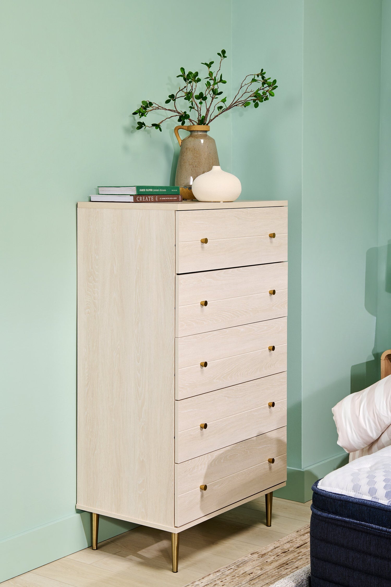 Lake Bedroom Chest of Drawers, 5-Drawer, 29"W x 52"H, Made in Canada, Glam - White