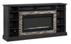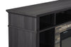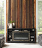 Bring some warmth to your living space with this Lappland electric fireplace that doubles as a TV stand. Its neutral black oak tone adds boldness to the piece’s wood grain texture, while the faux stone surrounding the firebox creates traditional contrast. Whether for use as an entertainment centre or dining room hutch, the 10 cubbies allow the placement of all the essentials. If you do decide to use it to watch the big game, this stand holds a TV up to 80 inches and has grommet holes to keep cables organized. During harsh winter days or even chilly summer nights, the dancing flame on crystal embers will provide comfort and ambiance in spaces big or small.