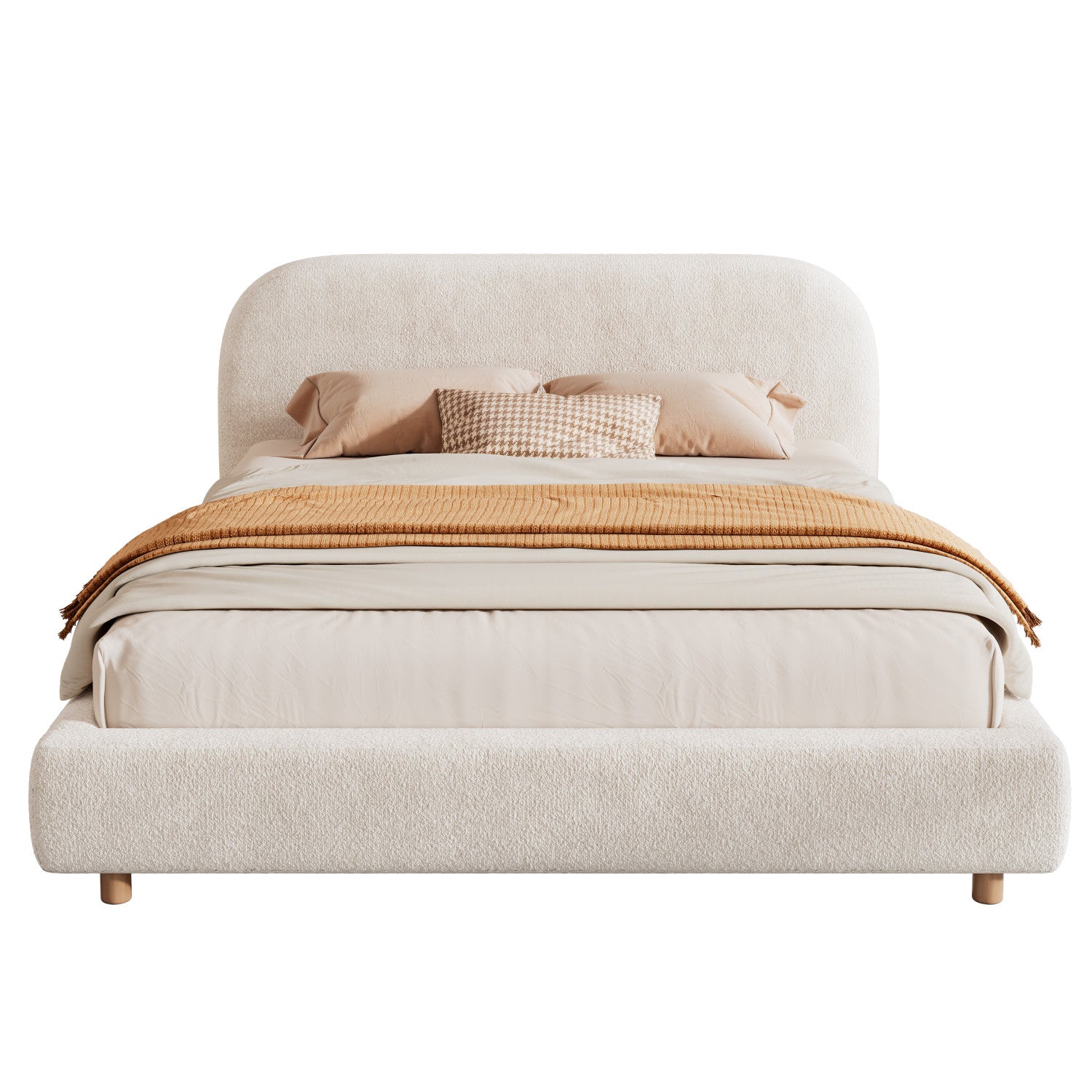 Sophie Teddy Fleece Upholstered Platform Bed with Soft Fabric and Sturdy Frame,Queen Size,Beige Queen Bed