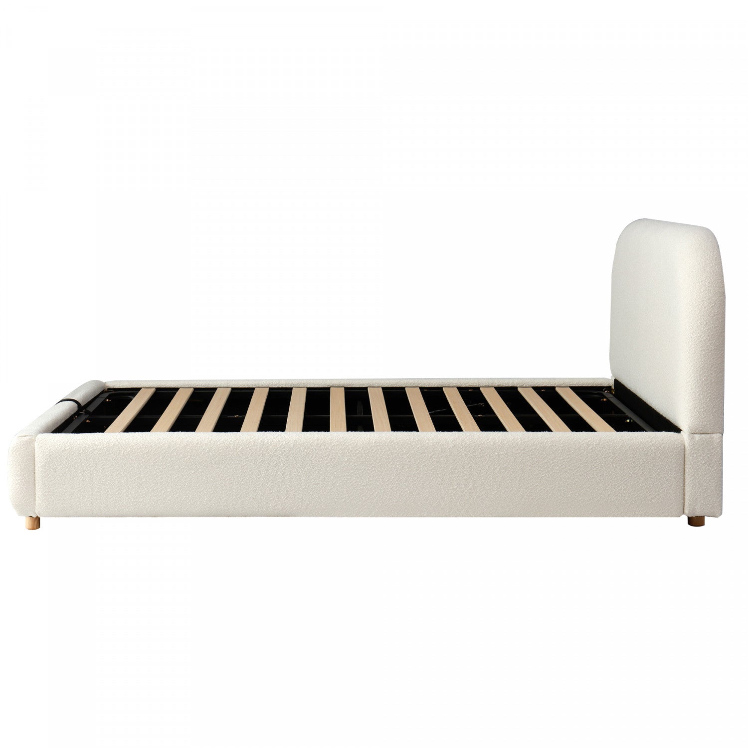 Laurel Ottoman Hydraulic Lift Storage Platform Bed with Boucle Upholstered and Hidden Under-White