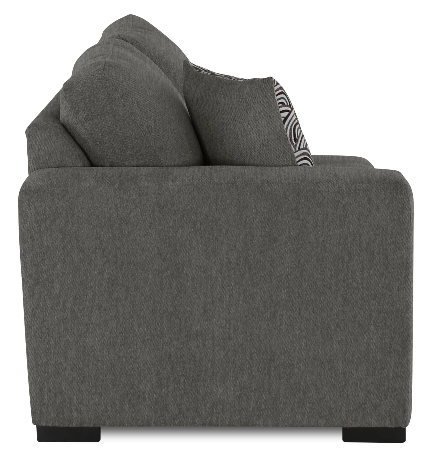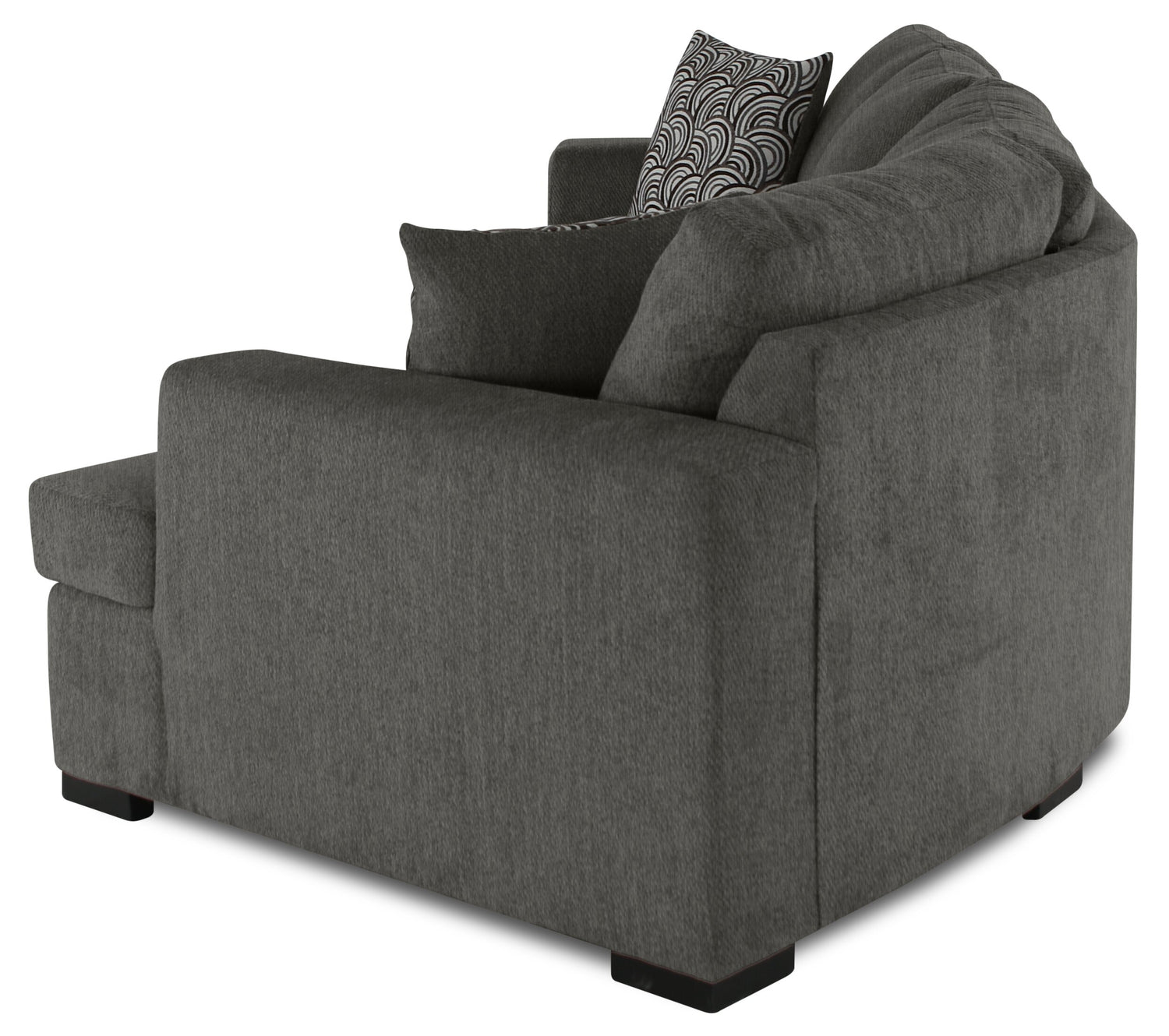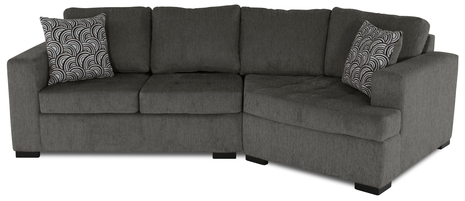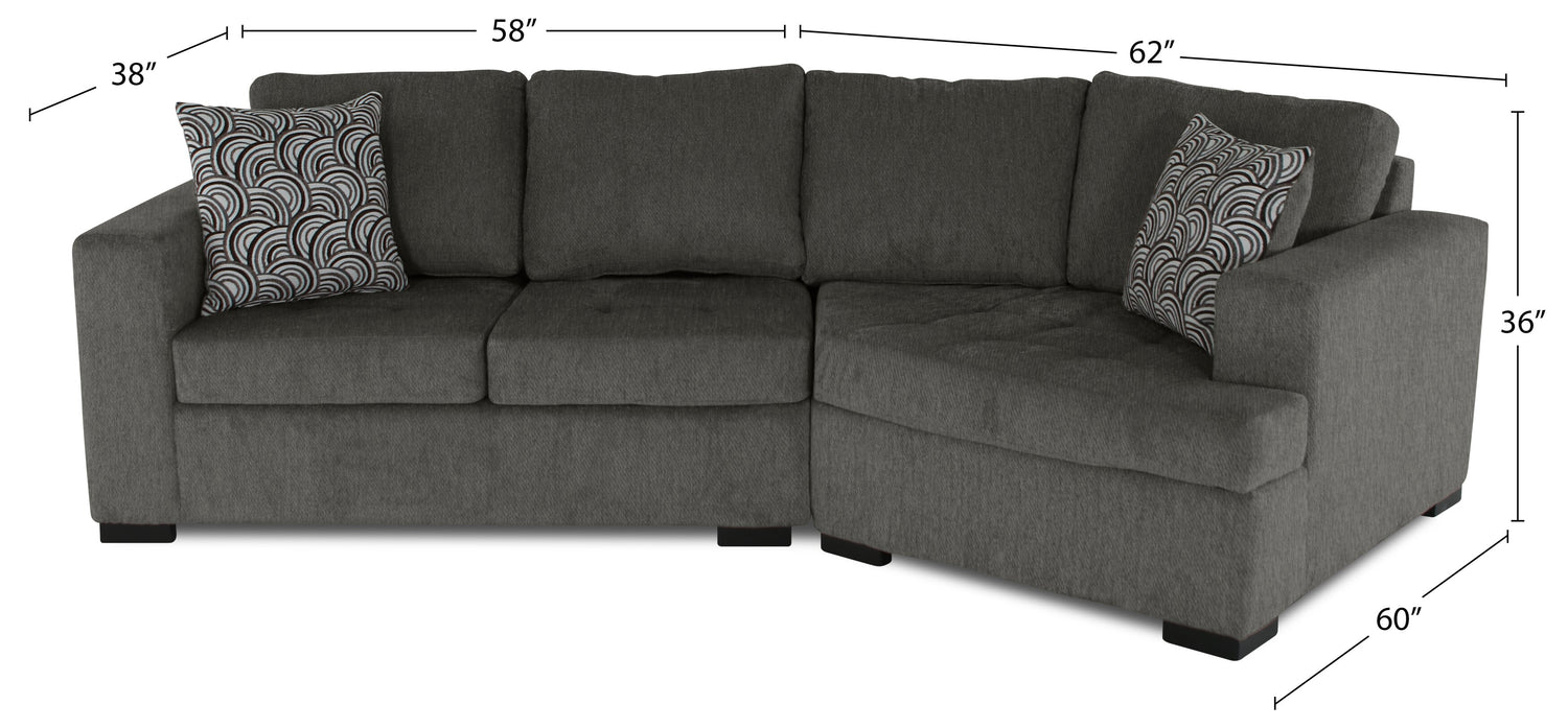 In a busy life, multipurpose furniture can make everyday occurrences so much easier. Whether hosting guests or a family movie night, this spacious Legend two-piece sectional can do it all in style. With a calm, contemporary design and a rich pewter colour, this sofa will add a sense of comfort to your home. Chenille fabric is soft, and the extra padding provides comfort and support. Plus, the cuddler component adds a unique flair while allowing you to curl up with a loved one. Get cozy and let comfort wash over you and your family with the Legend cuddler sectional.