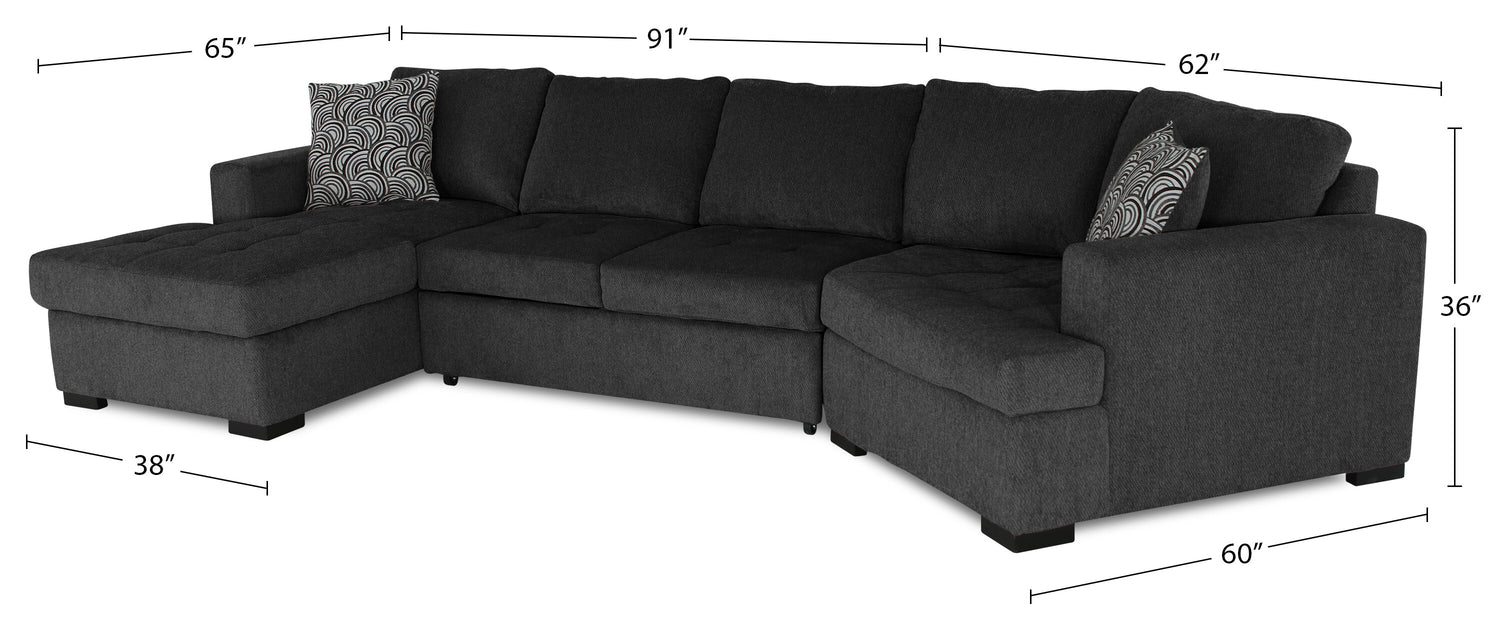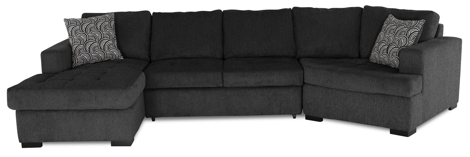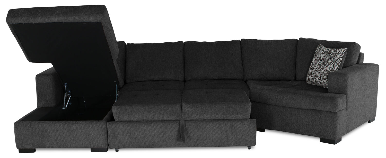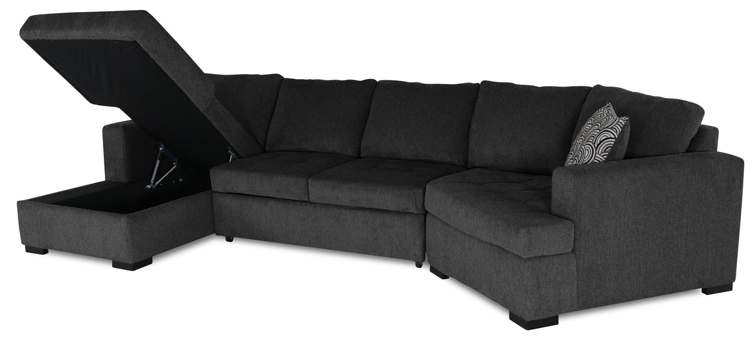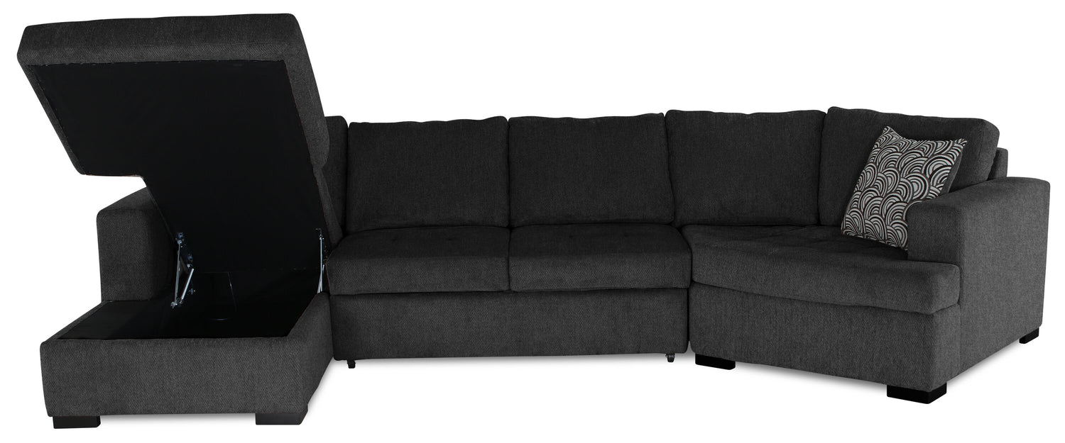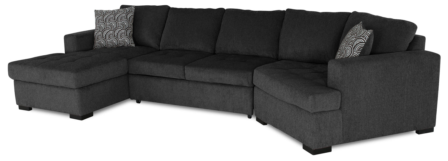 In a busy life, multipurpose furniture can make everyday occurrences so much easier. Whether for hiding clutter or having overnight guests, this spacious Legend three-piece sectional can do it all in style. With a calm, contemporary design and a rich pepper colour, this sectional will add a sense of comfort to your home. Chenille fabric is soft, and the extra padding provides comfort and support. Plus, the cuddler component adds a unique flair while allowing you to curl up with a loved one. Pull out the sleeper, get cozy and let comfort wash over you with the Legend cuddler sectional.