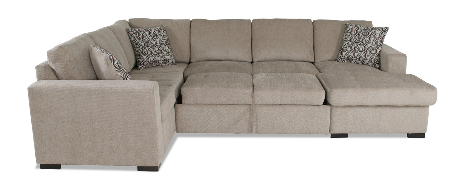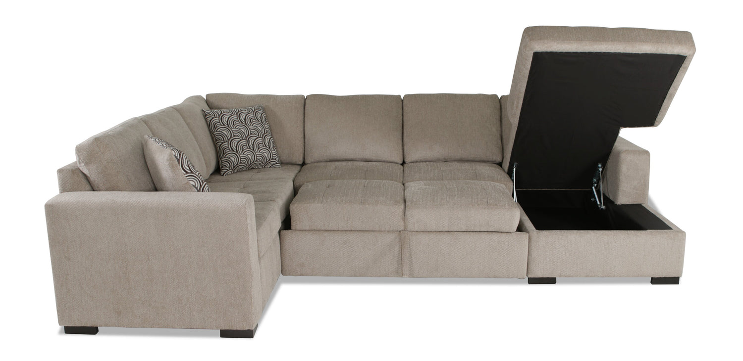 In a busy life, multipurpose furniture can make everyday occurrences so much easier. Whether for hiding clutter, having over night guests or hosting a family movie night, this spacious Legend three-piece sectional can do it all in style. With a calm, contemporary design and a rich platinum colour, this sofa will add a sense of comfort to your home. If a last-minute visitor needs to stay the night or an important guest is about to come by, you'll be prepared. Hide your disarray in the storage chaise, set up the built-in sleeper bed and be ready when you need to.