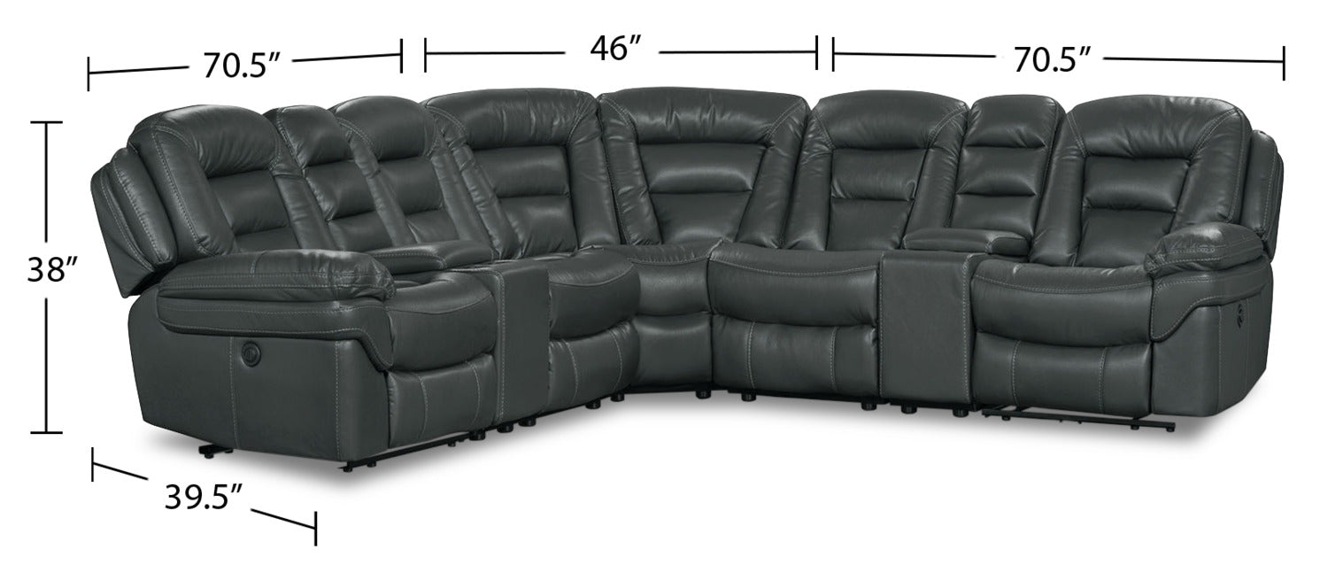 Leo 7-Piece Leather-Look Fabric Power Reclining Sectional with Storage Consoles and Cupholders - Grey