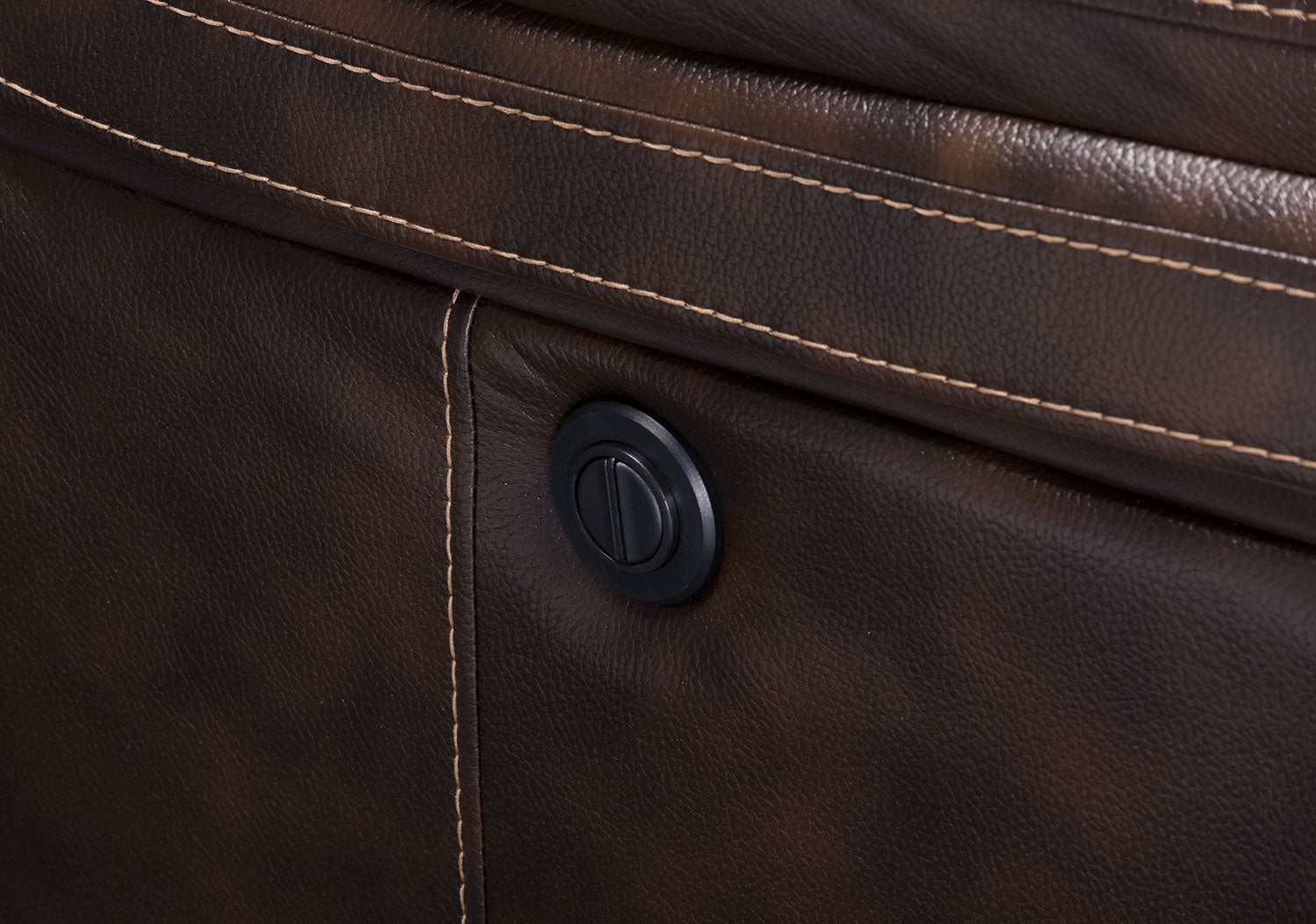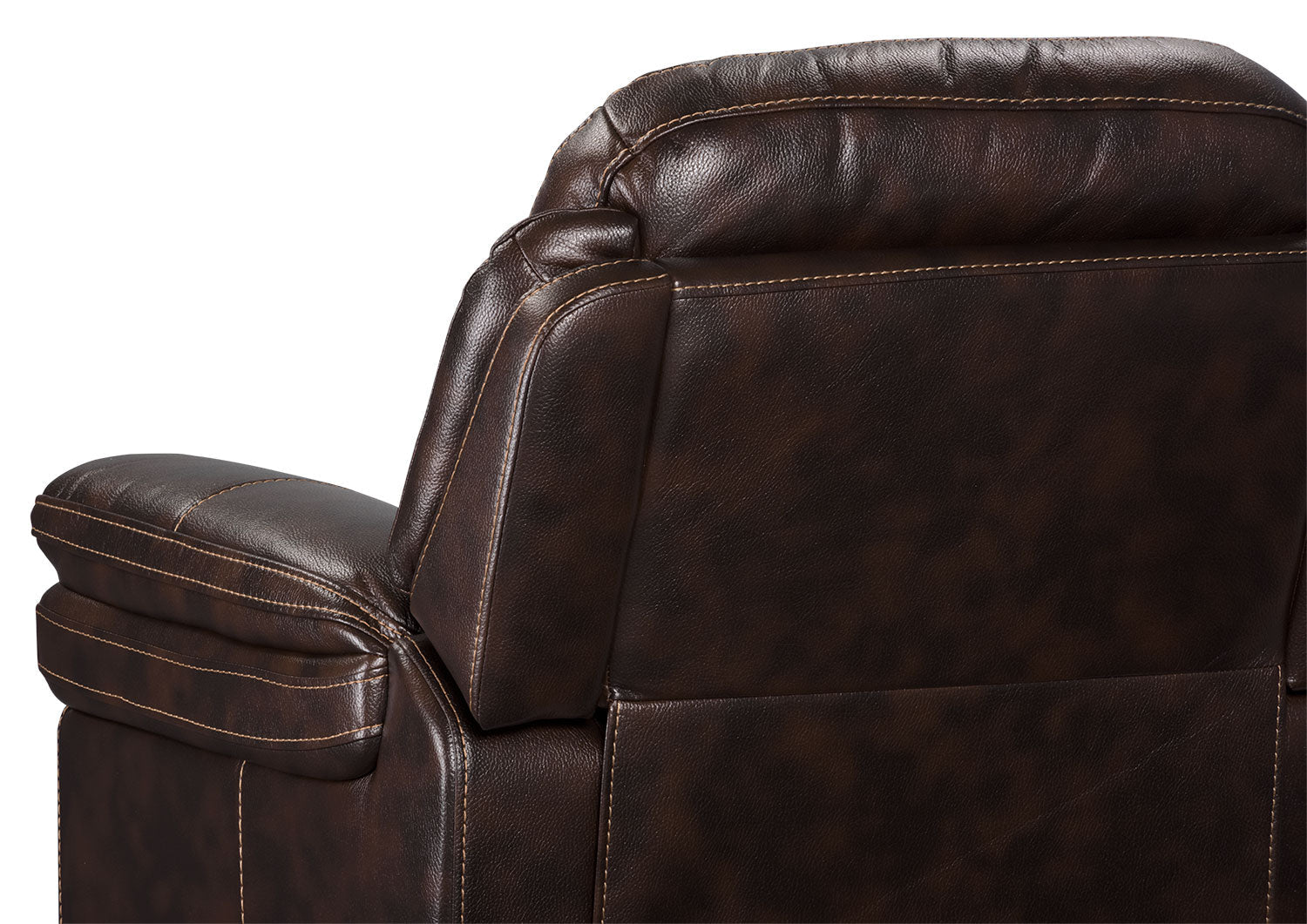 Create a warm and welcoming setting for your family with this plush Leo power reclining chair. Swathed in Leath-Aire upholstery, this revolutionary leather-look fabric adds a stylish look to your home while remaining breathable. Each cushion is filled with high-density foam to provide a cozy space to unwind. Meanwhile, recline the seat to stretch out at the end of a long day. Get comfortable on this Leo Leath-Aire chair.