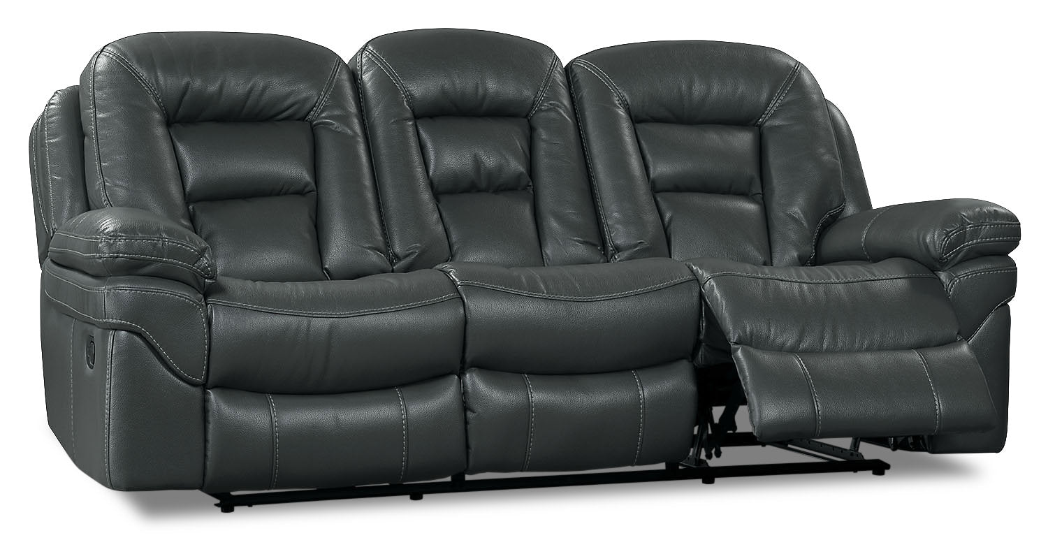 Create a warm and welcoming setting for your family with this plush Leo reclining sofa. Swathed in Leath-Aire upholstery, this revolutionary leather-like fabric adds a stylish look to your home while remaining breathable. Each cushion is filled with high-density foam to provide a cozy space to unwind. Meanwhile, the outside seats recline so you can stretch out at the end of a long day. Get comfortable on this Leo Leath-Aire sofa.