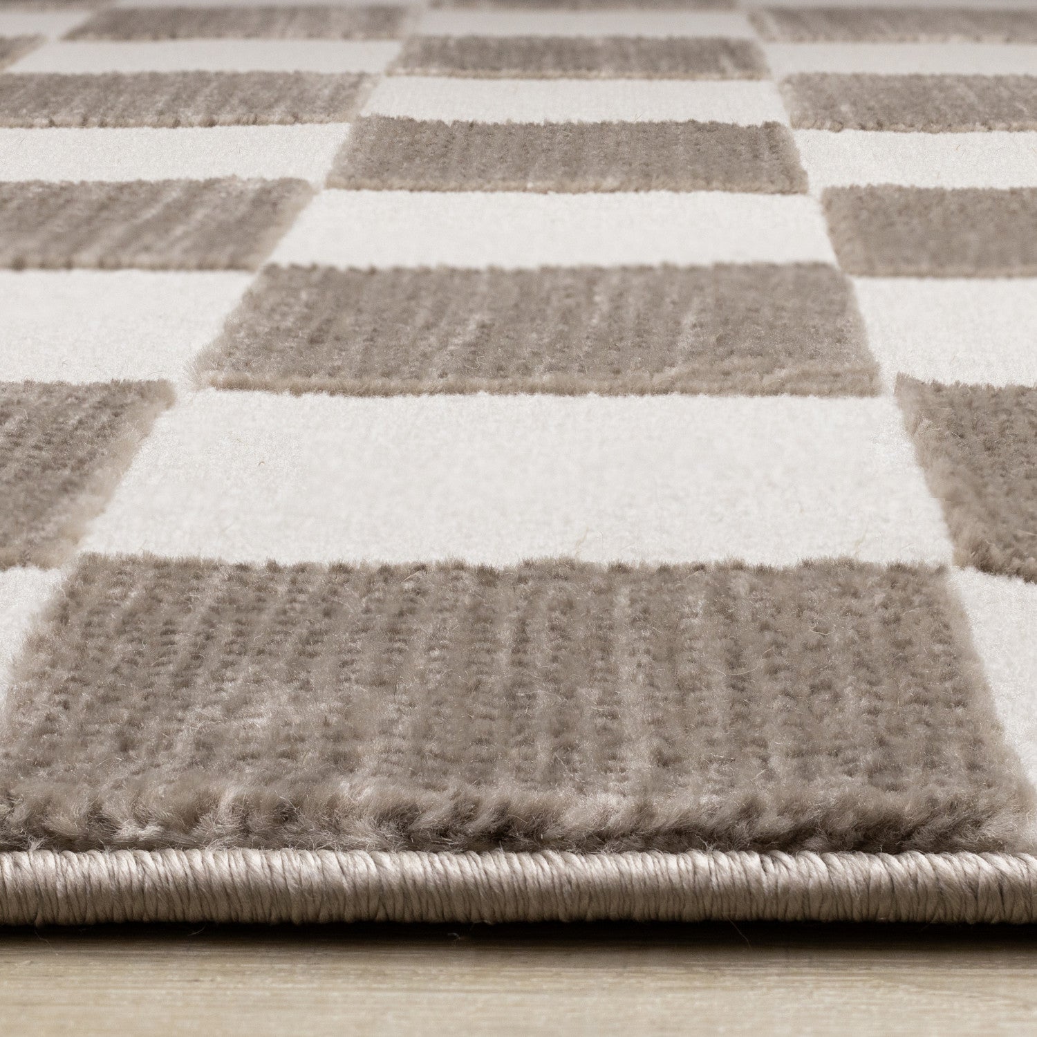 Leopold Checkered Brown White Geometric Area Rug - 5'3" x 7'7"