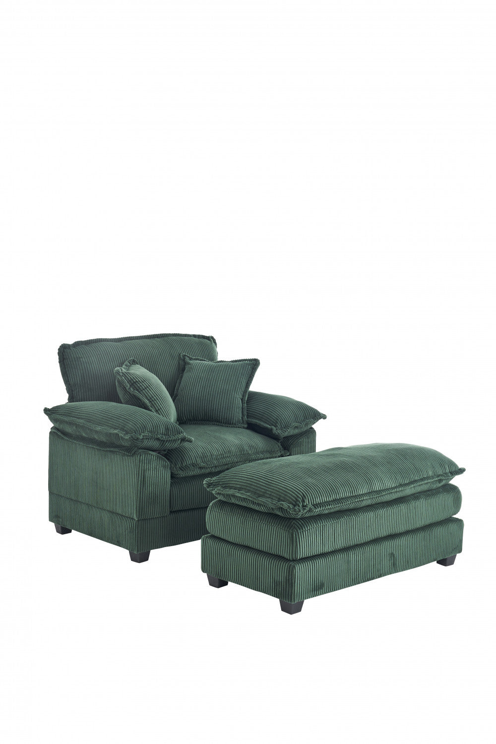 The Extra-Large Reclining Cloud Sofa delivers modern comfort and versatile style for living rooms, apartments, and offices. Upholstered in soft corduroy, it offers a cozy texture with excellent breathability and durability. The double-layered seat cushion combines foam and spring support for a plush, cloud-like seating experience. Designed for single-person relaxation, it includes two soft cushions and a movable ottoman that adapts to your space, providing comfort for lounging, reading, or movie nights.