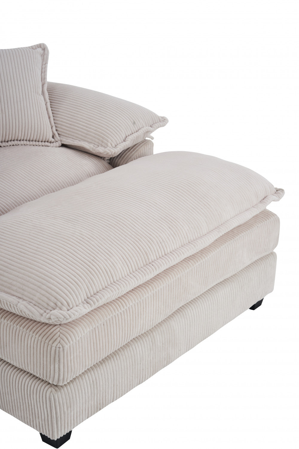 The Extra-Large Reclining Cloud Sofa delivers modern comfort and versatile style for living rooms, apartments, and offices. Upholstered in soft corduroy, it offers a cozy texture with excellent breathability and durability. The double-layered seat cushion combines foam and spring support for a plush, cloud-like seating experience. Designed for single-person relaxation, it includes two soft cushions and a movable ottoman that adapts to your space, providing comfort for lounging, reading, or movie nights.