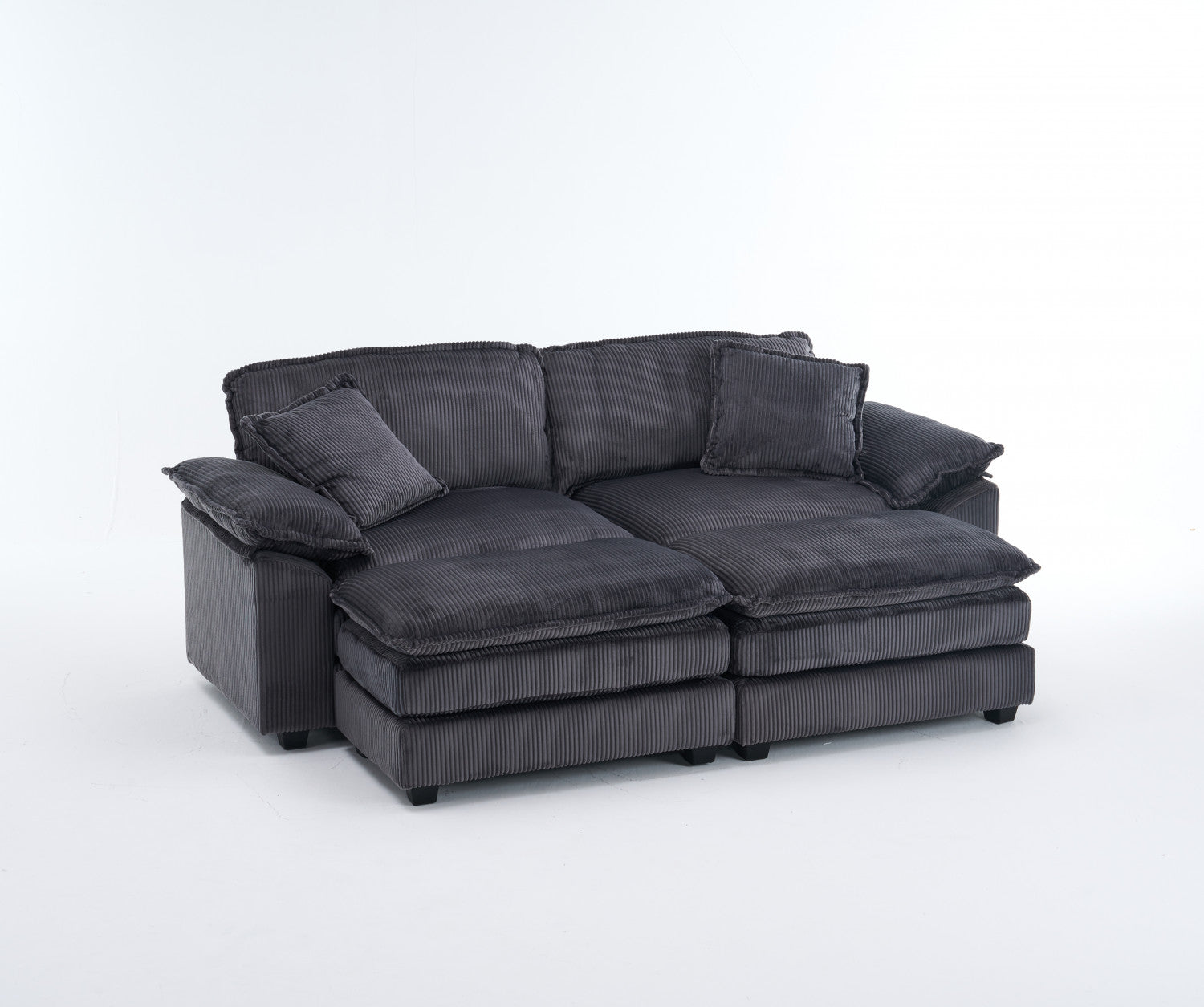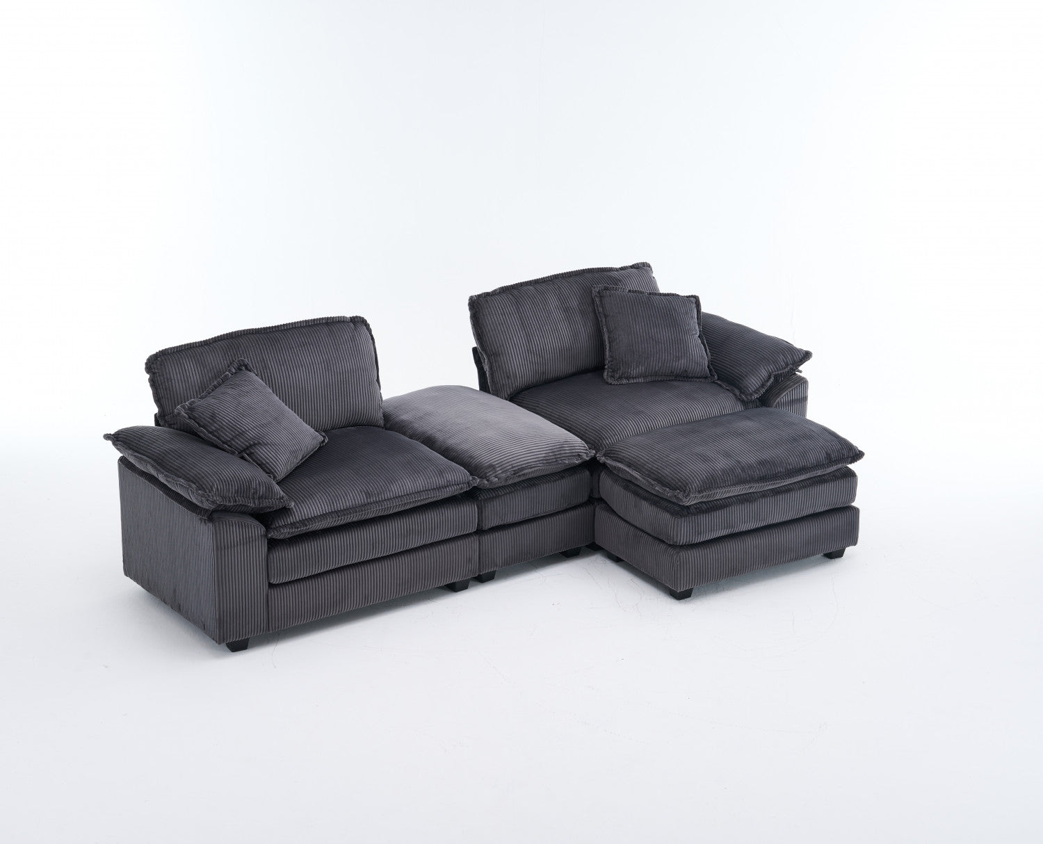 Liam 84.6" Comfortable Cloud Modular Sofa with Corduroy Upholstered,Grey