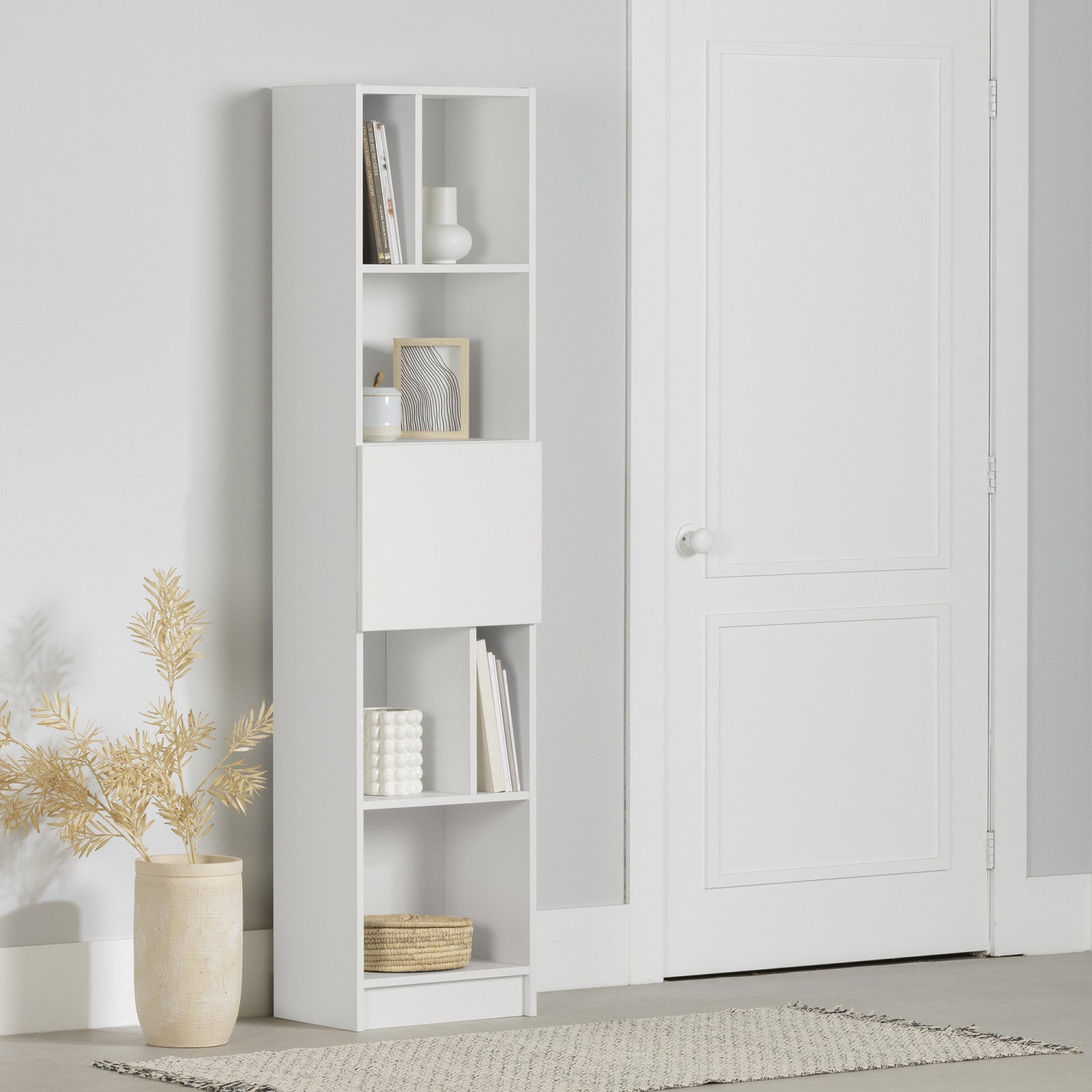 A bookcase that suits your needs. Leaning against the wall, this attractive 5-shelf bookcase takes up little floor space, leaving more room for the whole family to play and gather. Compact, it holds a lot and makes full use of the wall. Whether your space is modest or vast, your storage needs will be met. Each shelf can support up to 25 lb with ease. Create a modern living room, the symmetry of the straight lines within the storage compartments gives this practical piece of furniture a contemporary flair. Unique in appearance, this cut-out also has a functional side, allowing you to categorize your books efficiently.
