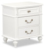 Show off your inner majesty with this Livy nightstand. This traditional curved design features turned feet and delightfully carved roses, all in a classic white finish. Each of the three spacious drawers is fronted by nickel pulls with crystal accents, perfect for adding some flair to your bedroom. A solid pine wood frame adds stability to keep your bedroom treasures tucked securely away. The Livy is a nightstand fit for royalty, and ready to add some serious sparkle to your regal bedroom.