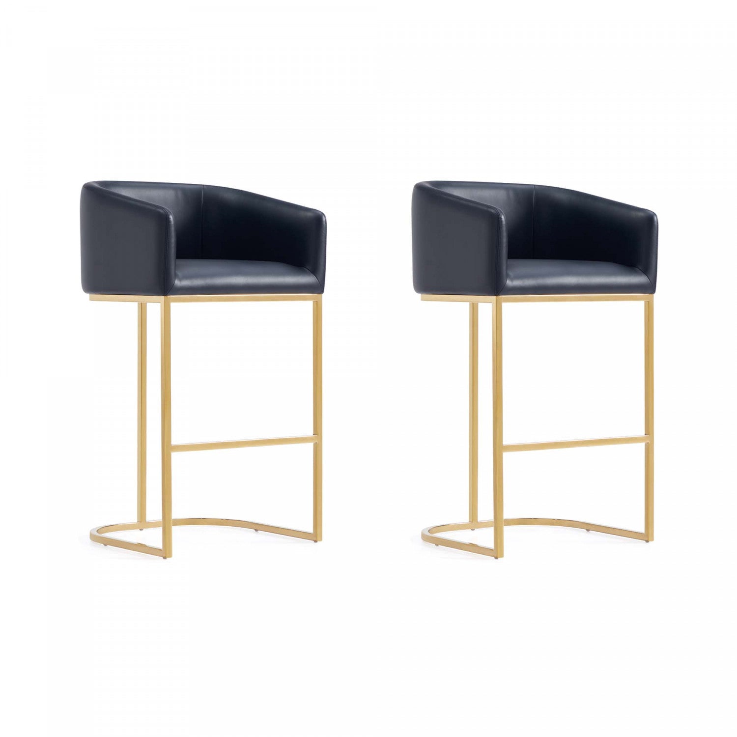 Louvre Mid-Century Modern Metal Upholstered Barstool in Black - Set of 2 Bar Stool