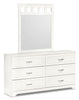 Lighten up your home with the Lulu mirror. Tinted in a replicated white paint finish, this 33" x 39" mirror brings out the colours in your room while giving the kids a chance to practice their best silly faces. The grooved, slotted frame adds a quaint, country cottage charm to the piece, matching the other items in the Lulu collection. Enjoy this beautiful mirror on its own, or pair it with the matching dresser (sold separately).