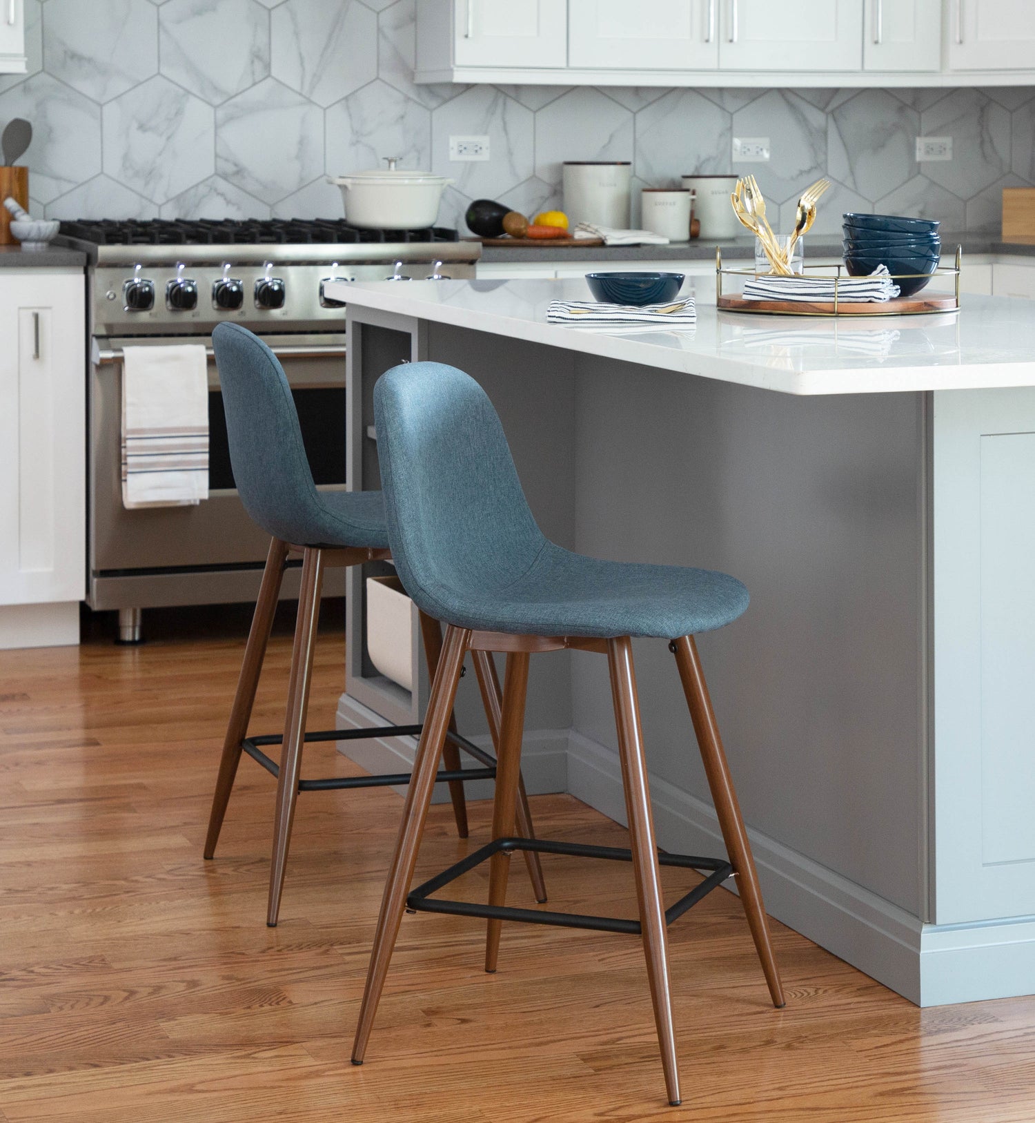 Add casual comfort to your counter with the LumiSource Pebble Counter Stool. A simplistic design is complimented by a steel frame, tapered legs and upholstered seat. Available in a variety of upholstery colours, choose the one that ties in with your decor.