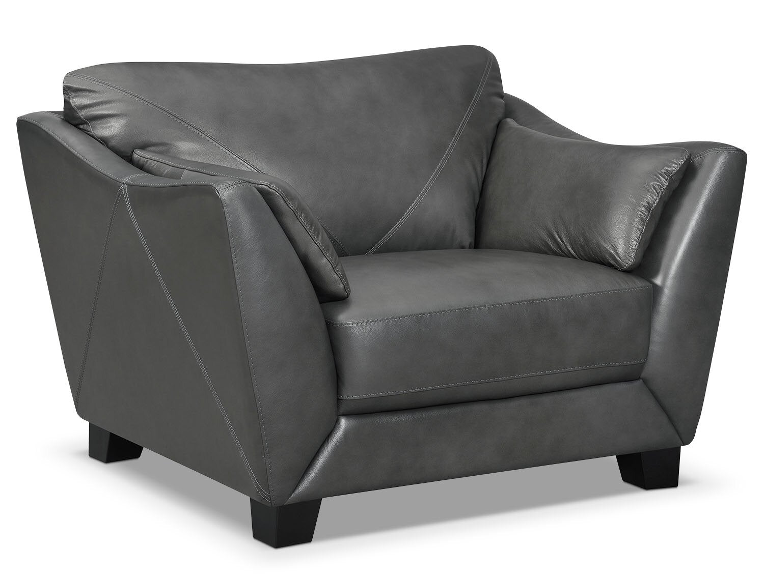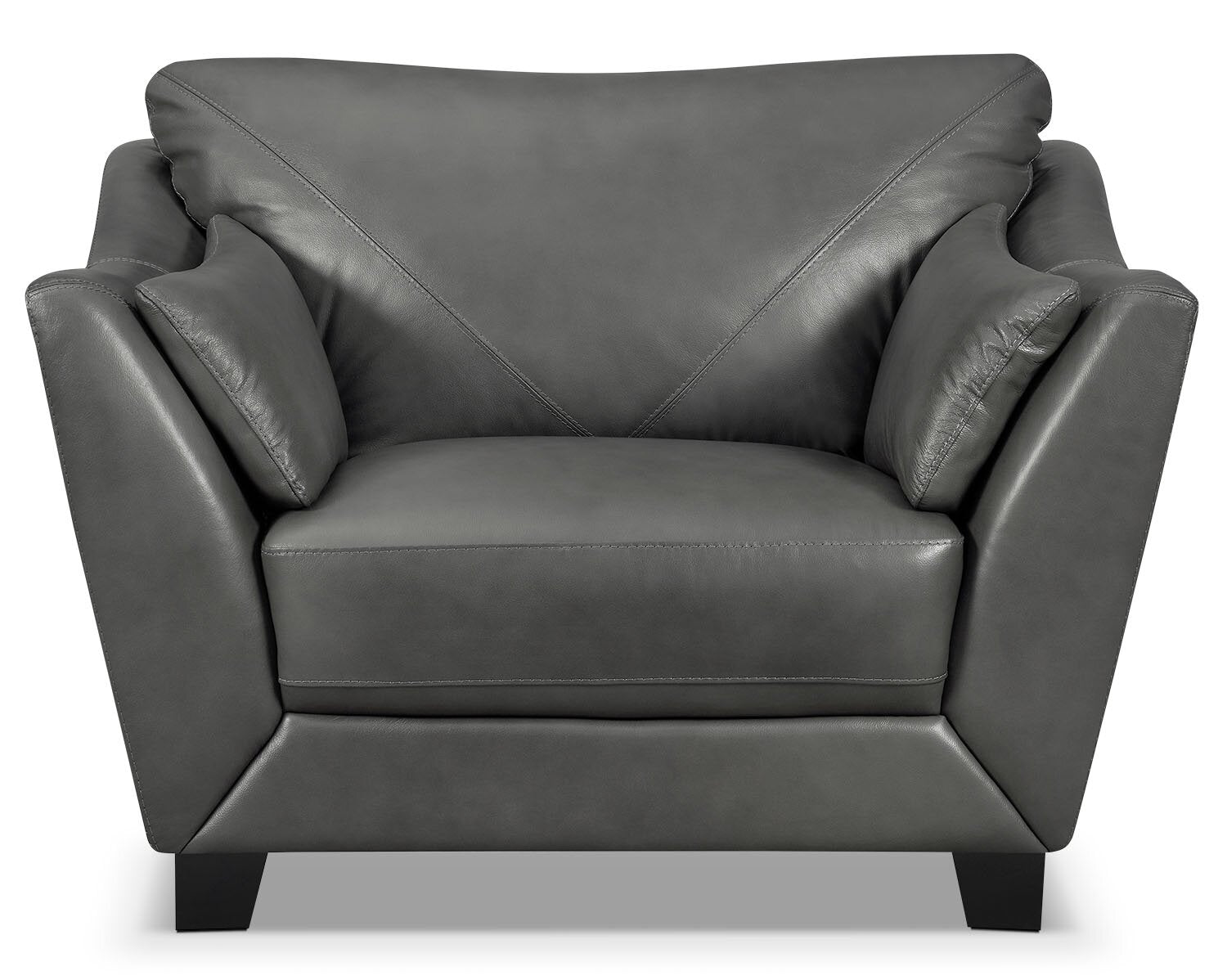Take a seat on this elegant Lusso genuine leather chair, and experience true luxury in your own home. Each seat and back cushion is teeming with thick and comforting high-density foam, allowing you to truly relax on the deep seats after a long day. Made with grey leather, the seating area features V-shaped stitching to echo the angled chair arms. Plus, the solid wood and engineered hardwood frame provides a reliable base for entertaining your guests.