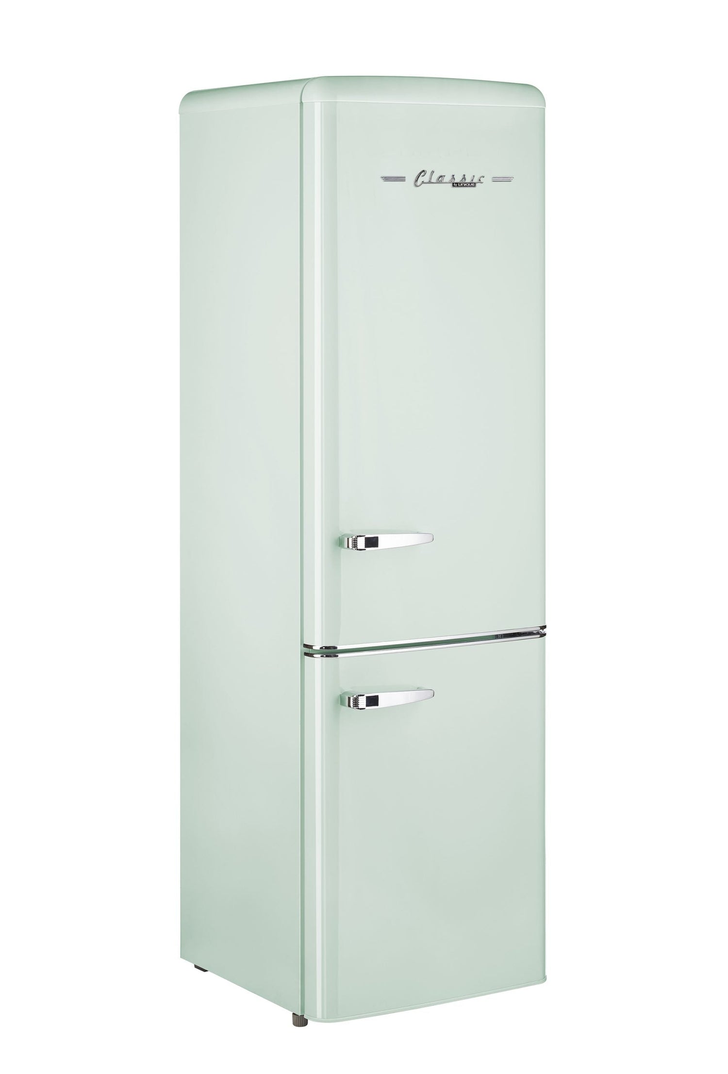 Unique's 9 cu. ft. retro bottom mount refrigerator transports you back to the '50s with its iconic retro design and chrome finished accents. This refrigerator is for energy efficiency all year-round, designed for optimal energy savings and easy, dependable use. Storing your fresh and frozen foods is easy with its convenient fridge on top and freezer on the bottom design. Convenient storage options and simple effortless controls all packed into a stylish retro design make this the perfect stand out unit for your home, cottage or man cave/bar.