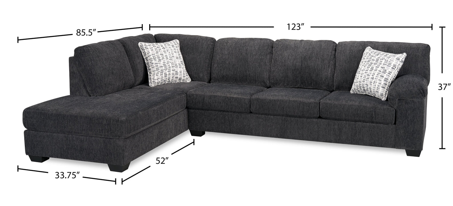 Made in Canada Morgan 2-Piece Left-Facing Chenille Fabric Sectional with Sofa and Accent Pillows - Grey