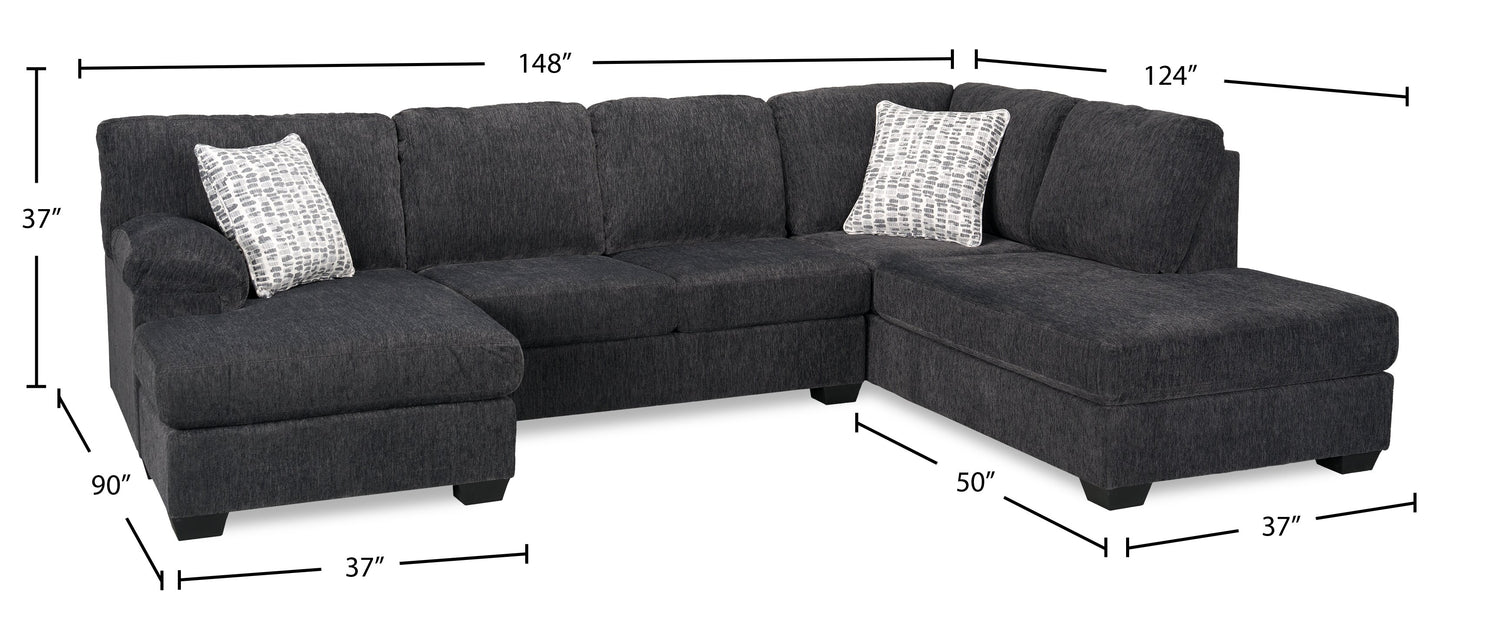 Made in Canada Morgan 2-Piece Right-Facing Chenille Fabric Wrap Sectional with Accent Pillows - Grey